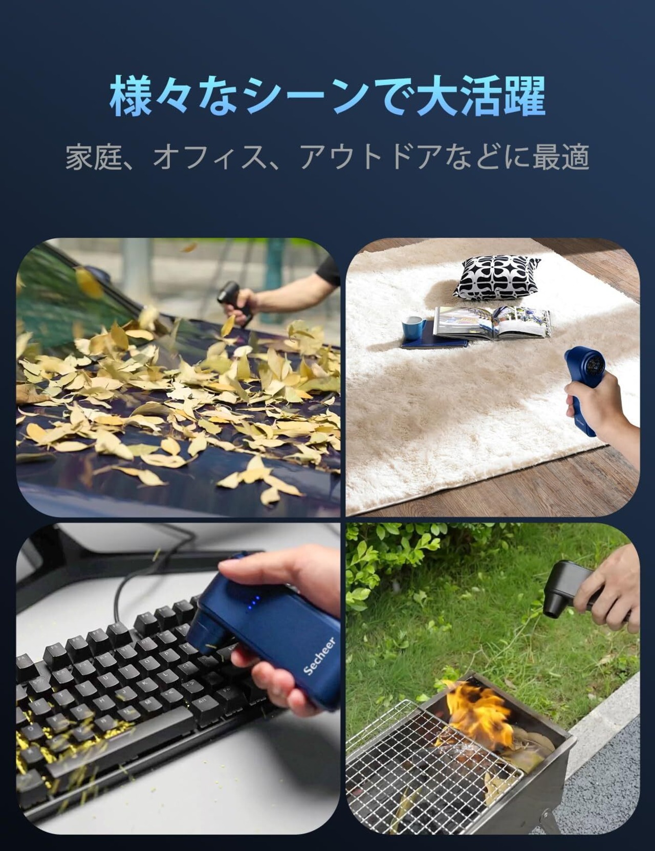 Secheer 電動エアダスター 65m/s 超強力 コードレス 充電式 小型多用途 家庭・車内・オフィス掃除 ブルー