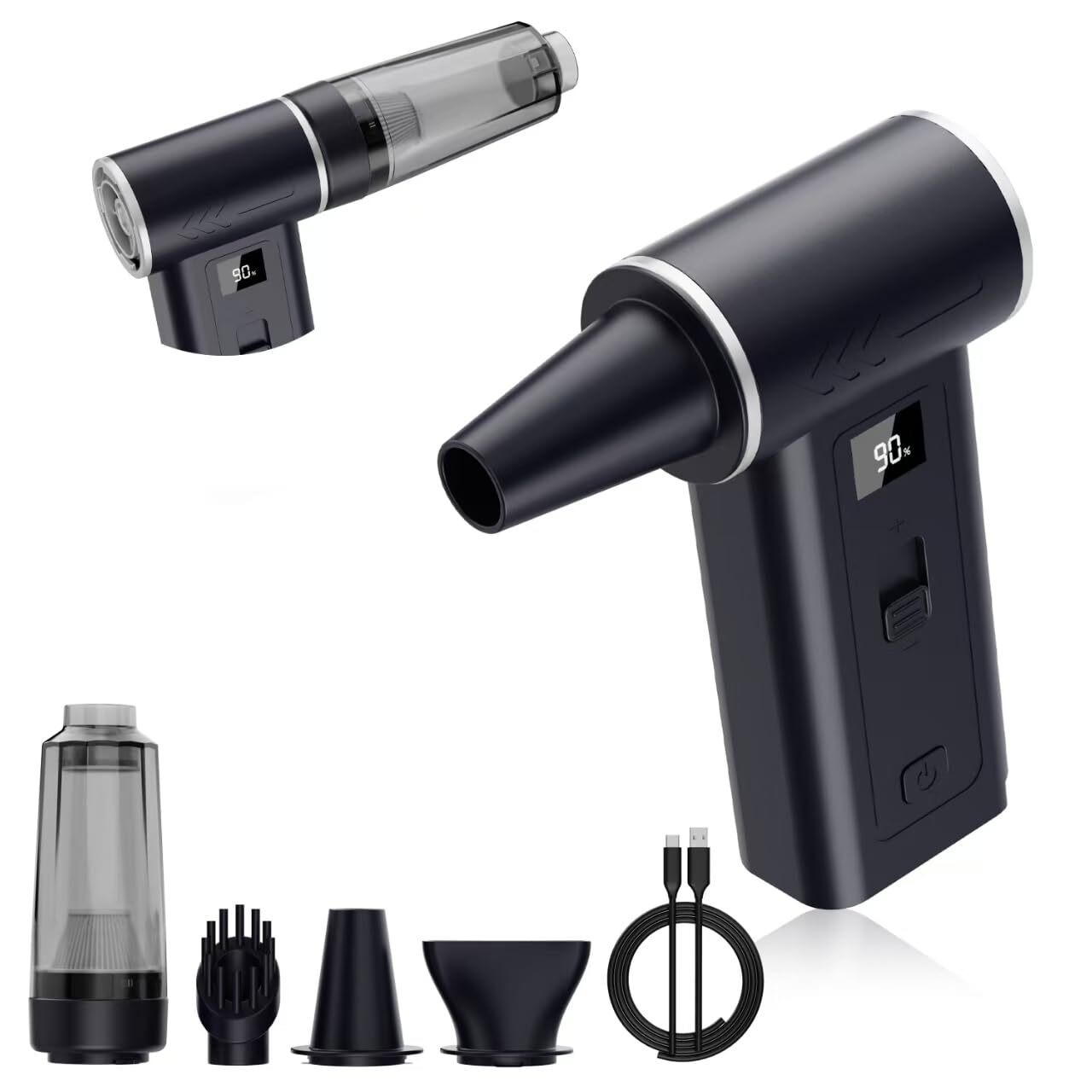 エアダスター 電動エアダスター ブロワー ハンディクリーナー 超強力200000RMP高速回転 ブラシレスモーター 無段階風量調整 2*4000mAh大容量バッテリー コードレス USB Type-C充電式 小型 4種類ノズル付き PC掃除/キーボード/家具/車内/エアコン/洗車用 日本語取扱説明書付き