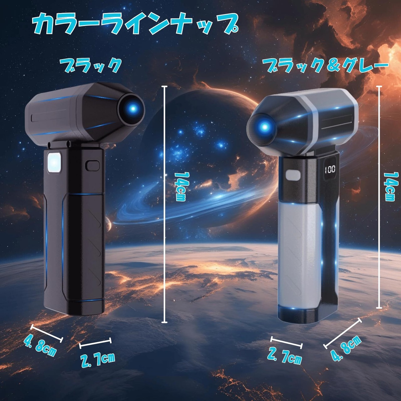 【ダブルタービンファンで風量2倍!】 本製品は、前部の固定タービンダクトと後部の回転ファンからなる、CARLLE独自開発の「ダブルタービンファン構造」を採用しています。 この二段階設計により、後部ファンが効率的に空気を取り込み、前部タービンがその空気を乱流の少ない強力な筒状の風として集中噴射。結果として、コンパクトなサイズを維持しながら従来比2倍の大風量を実現しています。
