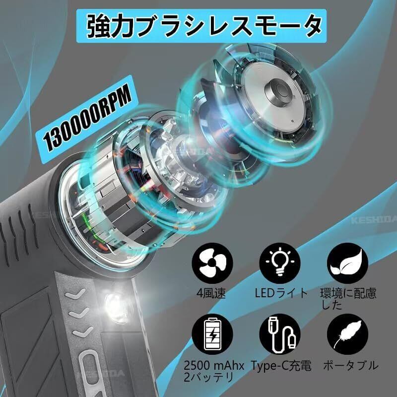 KESHIDA エアダスター 電動 ターボジェットファン 最新アップグレードX6 超強力回転速度130,000RPM 最大52m/sの圧倒的風力を提供 4段階の風力調整が可能 充電式 コンパクトミニジェット扇 小型 軽量 携帯に便利 内蔵300LM高亮度LED ほこりは无所遁形 大容量バッテリー搭載 多用途キーボード/エアコン/車内/BBQ送風機など(ブラック X6)
