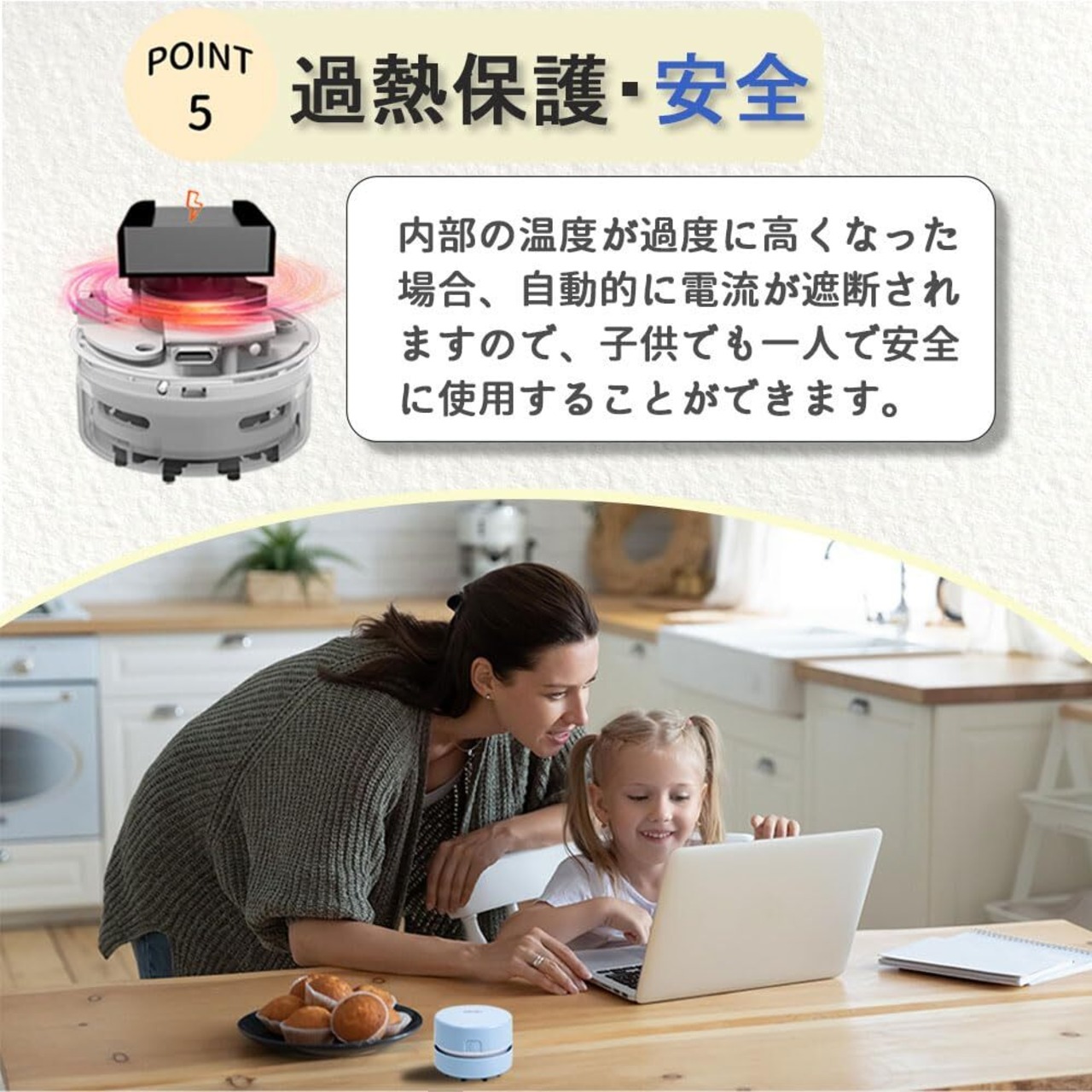 【コンパクト・安全】小型軽量のデザインで、場所を選ばず簡単に持ち運べます。かばんに入れて、オフィスや教室などに持って行き、必要な時にすぐ取り出して使えます。機械過熱保護機構で、内部の機械的損傷を避けるために、安全に使用します。