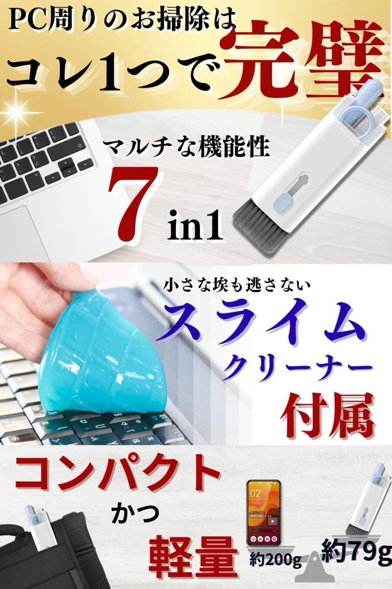 キーボード 掃除 【多機能 7in1と 掃除用スライム 付属 】ジェルクリーナー 車内 掃除 スライム イヤホン掃除 強吸着 ホコリ 繰り返し使える (ブルー)