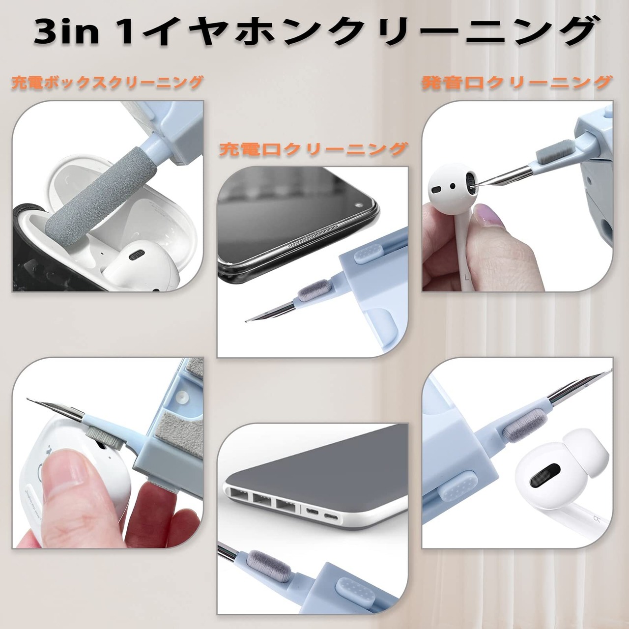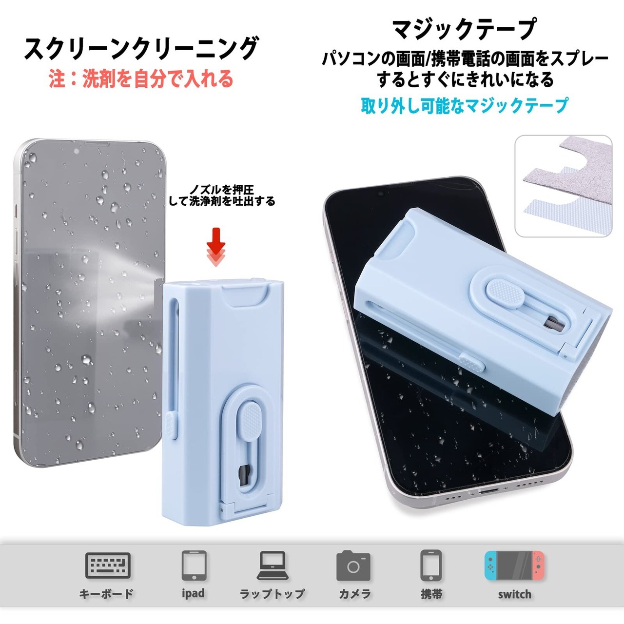 【8 in 1多機能クリーニングツール】 キーボード掃除 イヤホンクリーニング Airpods 1/2/3/Pro用 軽量で持ち運びに便利 イヤホンクリーニング/キーボード 掃除/スクリーンクリーニング (携帯電話/iPad/タブレット/AirPods/ヘッドホン/カメラなどに対応) 一体収納デザインでコンパクト(青)