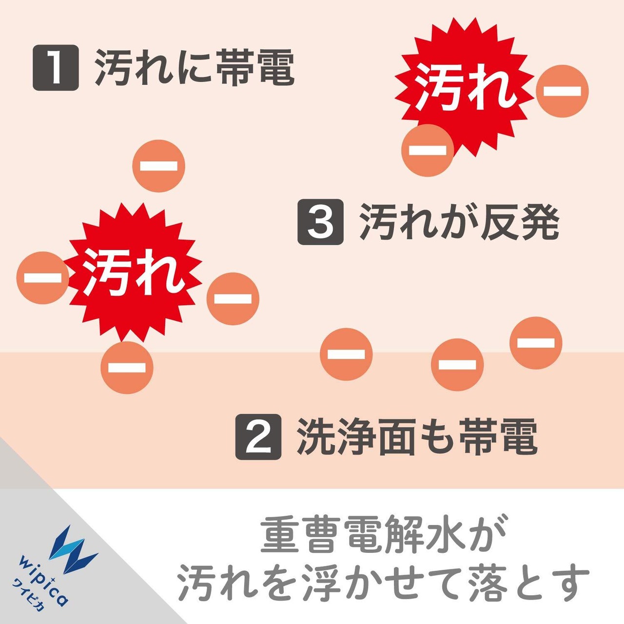 重曹水溶液を電気分解することで得られる重曹電解水の働きで汚れを浮かせて落とします。