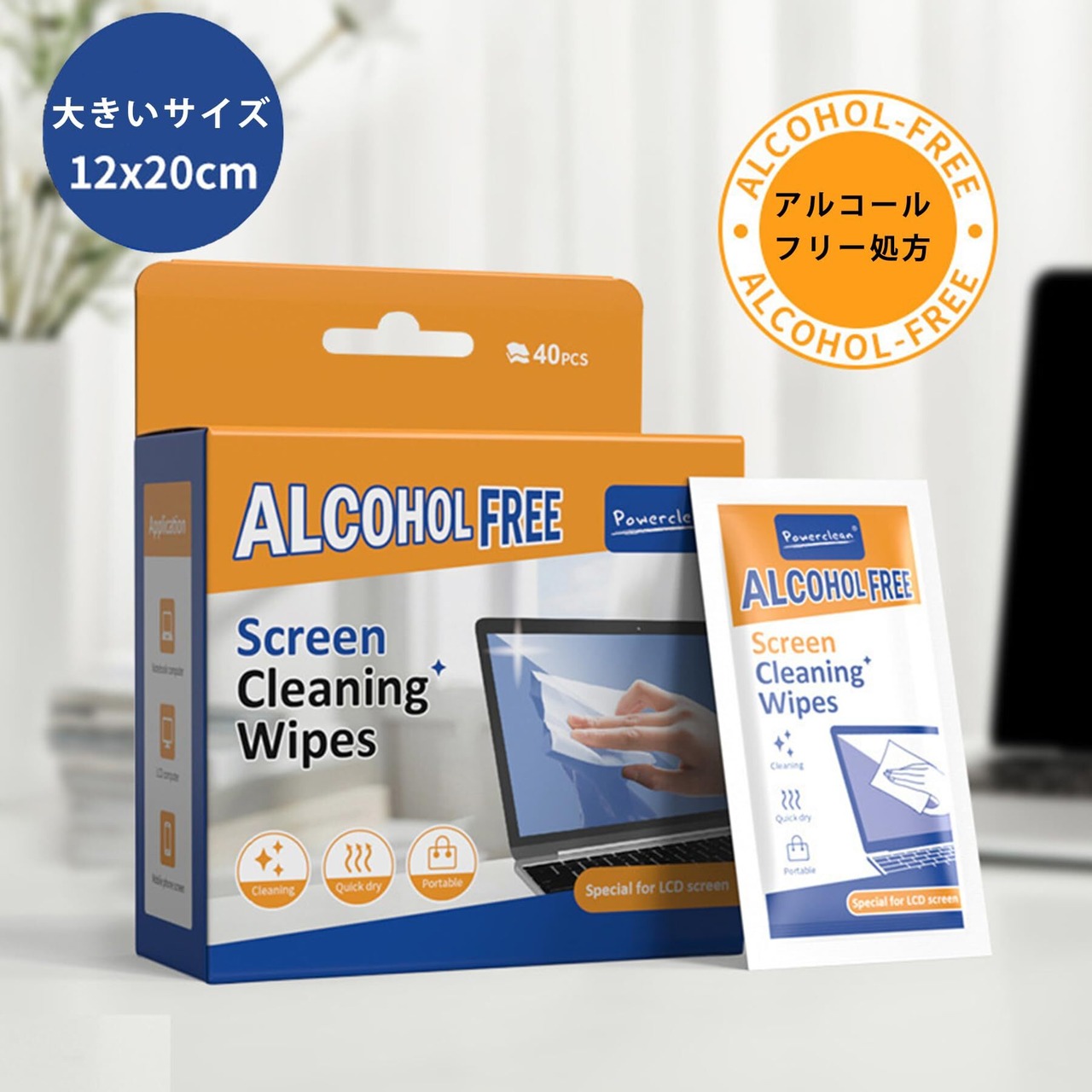 ウェットティッシュクリーナー 液晶画面用 クリーニングウェットティッシュ スマホ タブレット パソコン用 大判 個包装 速乾 拭き跡なし 除菌対応 40枚入