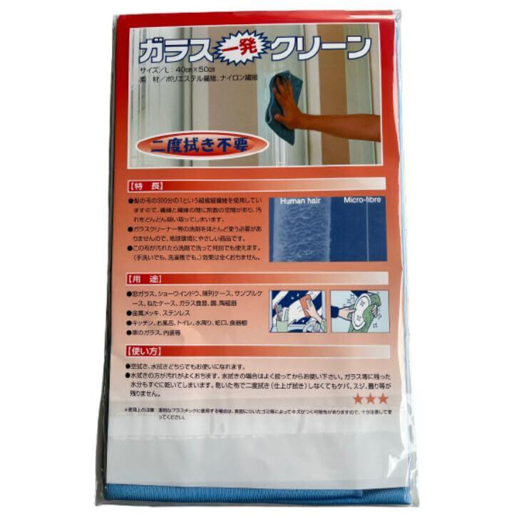 ガラス一発クリーン L ブルー 40×50cm マイクロファイバークロス ままにこにこ