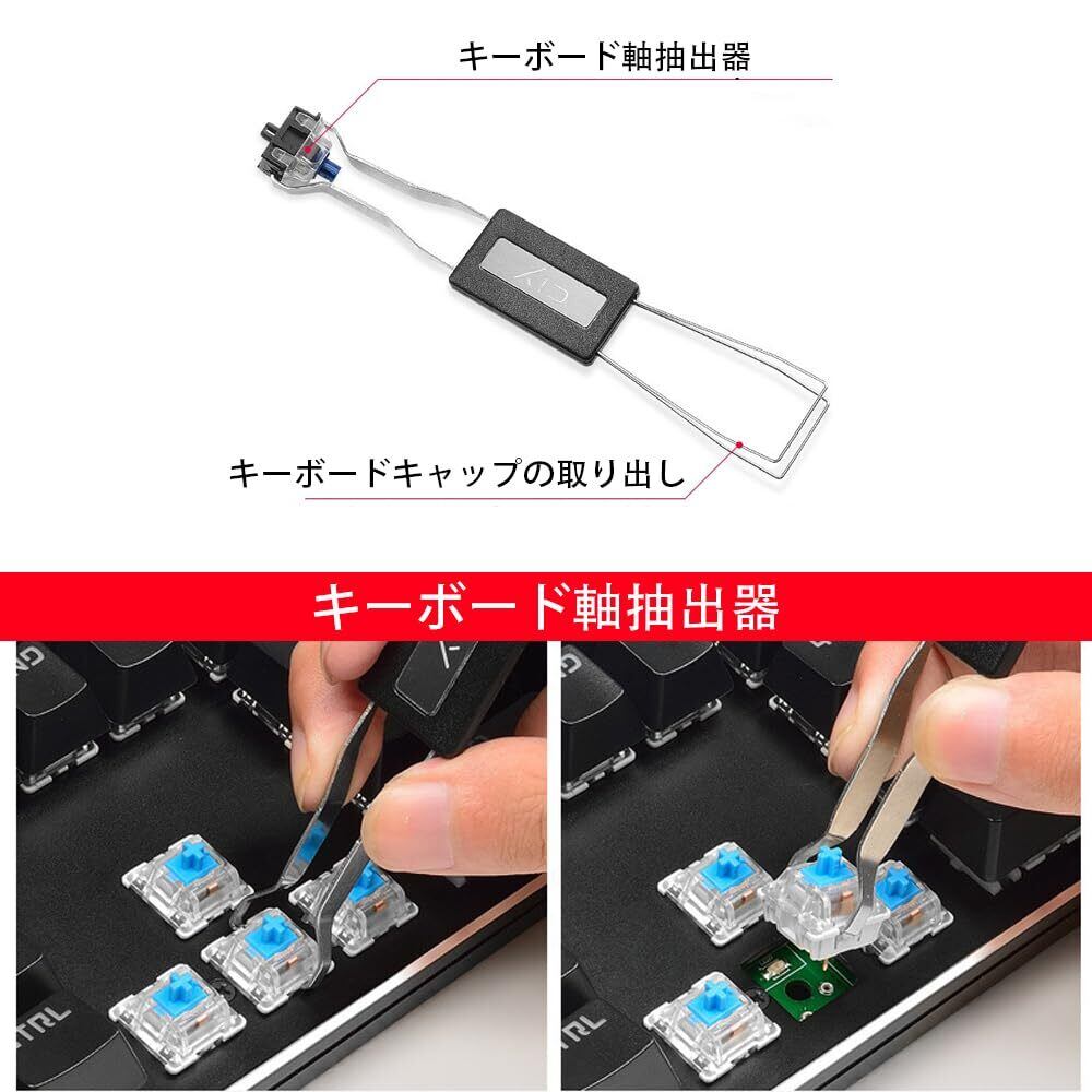 1.【パッケージ内容】キートップ引抜工具*1、クリーニングブラシ*1 2.【 便利な2WAY仕様 】 本製品は、両端がそれぞれ違う仕様となっており、キーキャップ&キースイッチ両用:キーキャップだけでなくキースイッチも簡単に引き抜ける!キースイッチが溶接で固定した場合、解除してからご利用ください。 3.【帯電防止クリーニングブラシ】硬いナイロン毛のブラシが、キーボードから粒子やほこりを取り除きます。軽量でポータブル、持ち運びや使用が簡単で、電子機器を清潔に保ち、電子機器の寿命を延ばします。 4.【注意事項】ノートパソコン、パンタグラフ式キーボードなどのその他特殊なキーボードではご使用になれません。キートップを外す際、スタビライザーの治具を破損しないようにご注意ください。 5.【耐久性】軽量でポータブル、持ち運びや使用が簡単で、電子機器を清潔に保ち、電子機器の寿命を延ばします。