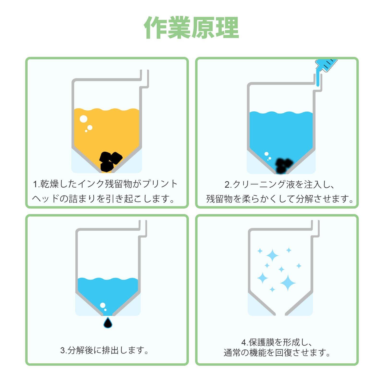 【インク詰まり・印刷かすれの解消】乾燥したインクや紙くずを効果的に溶解し、プリントヘッドの目詰まりや印刷のかすれを迅速に改善します。