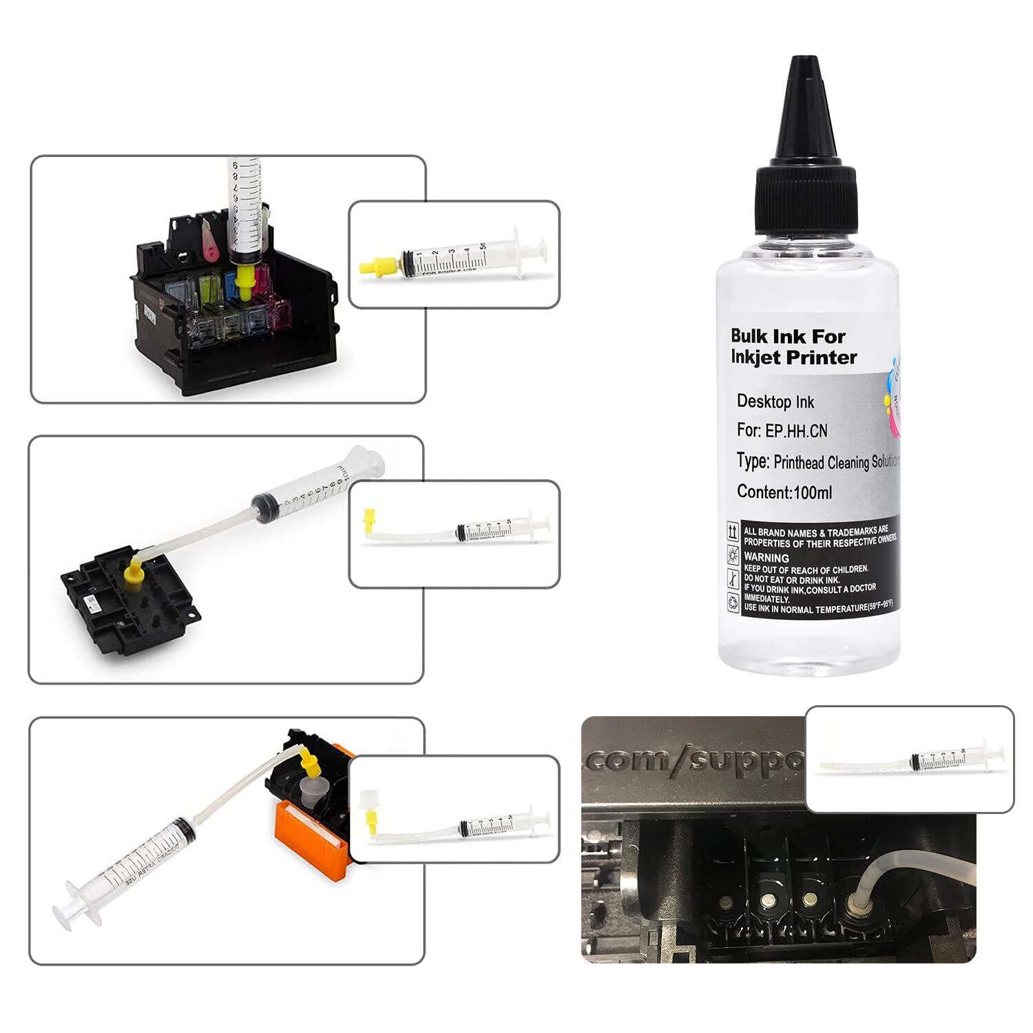 【セット内容】 100mlのプリンターヘッドクリーニング液2本、5mlの注射器1本、シリコンチューブ1本、プリンターへのインク注入用アダプター4個、手袋1組