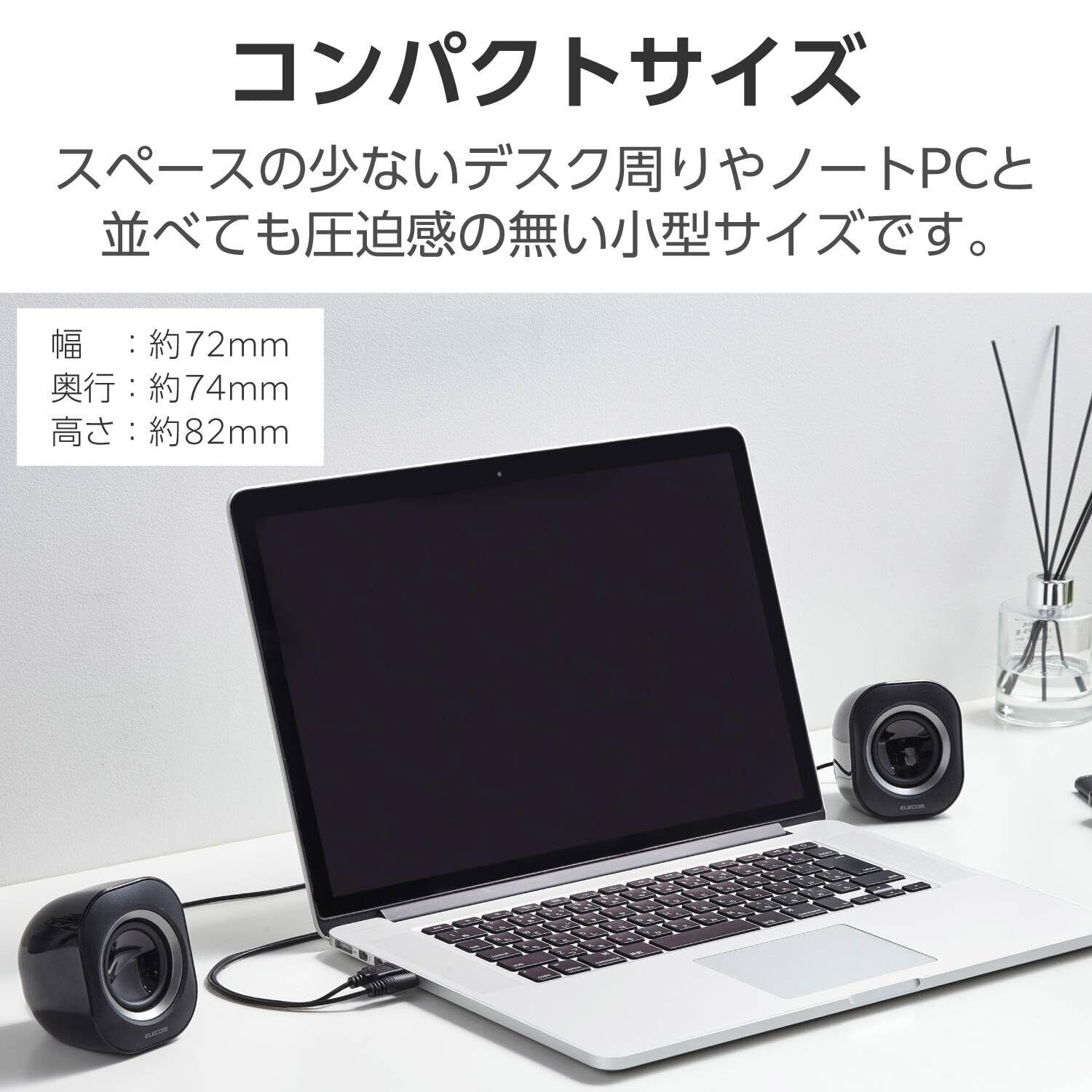 エレコム スピーカー USB給電 4W コンパクト φ3.5ミニプラグ接続 ブラック MS-P08U2BK