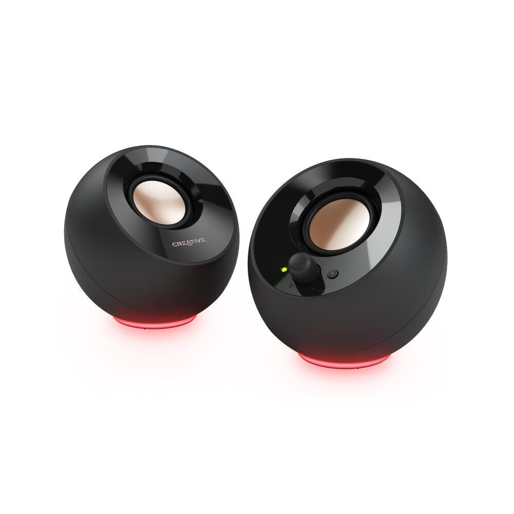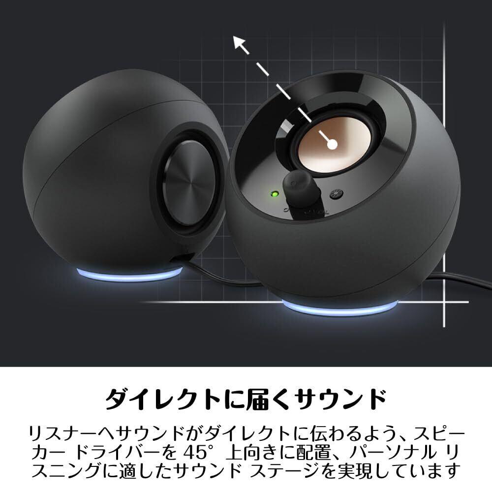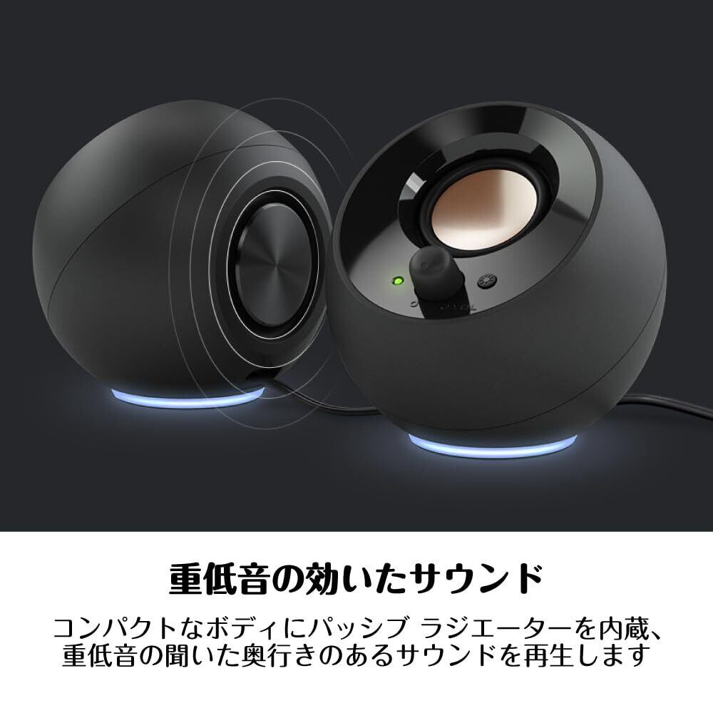Creative Pebble SE ブラック RGB ライティング 搭載/音声入力 ピンプラグ/電源 USB C 接続 / 45度 上向きスピーカー 低音パッシブラジエーター 搭載 ピーク出力8.8W/総合4.4W RMS PC スピーカー SP-PBLSE-BK
