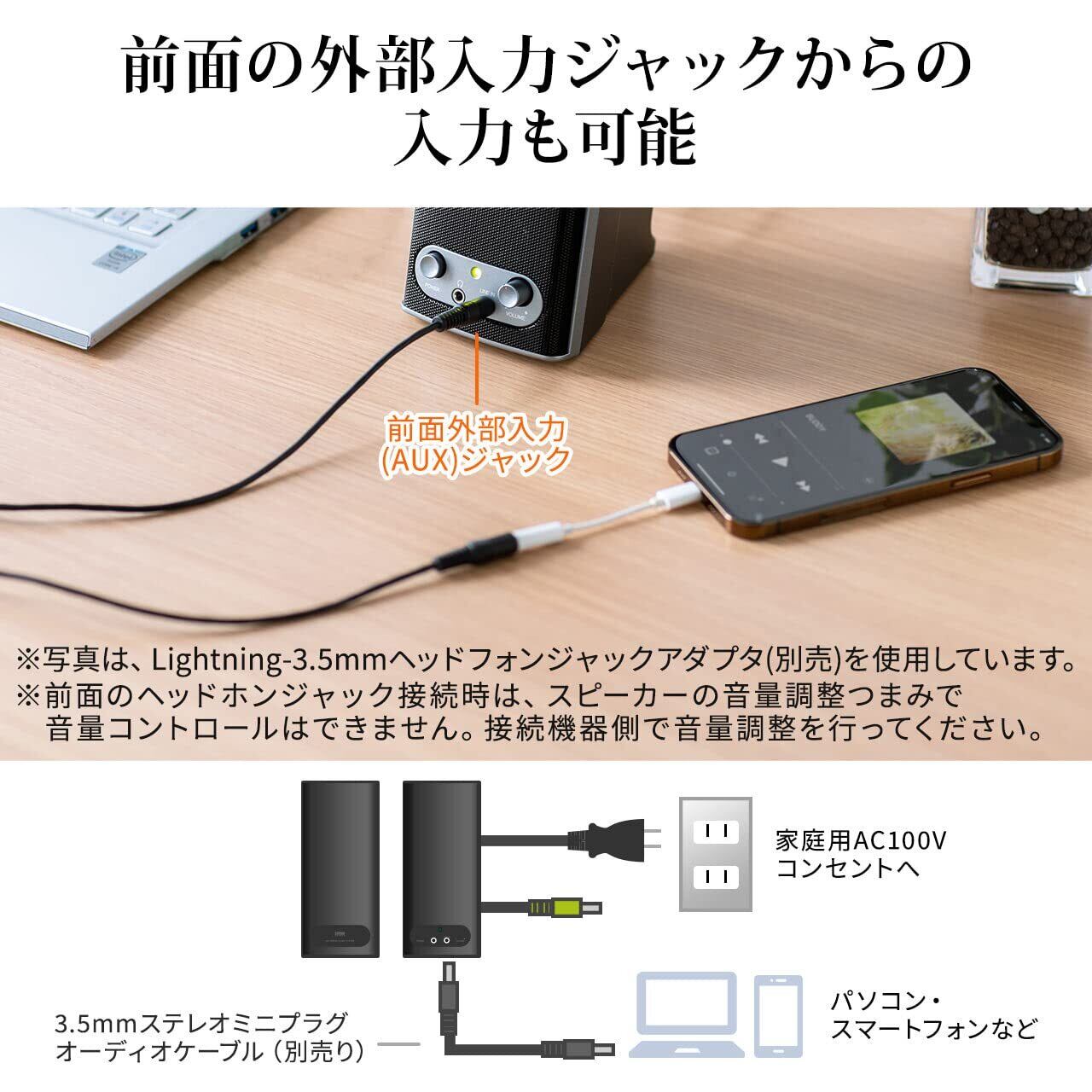 電源スイッチと音量調節つまみが付いているので、電源ON/OFFや音量調節も手元で操作できます。● アンプ内蔵 で、パソコンやMP3プレーヤーに接続するだけで手軽に迫力の高音質サウンドを楽しめます。