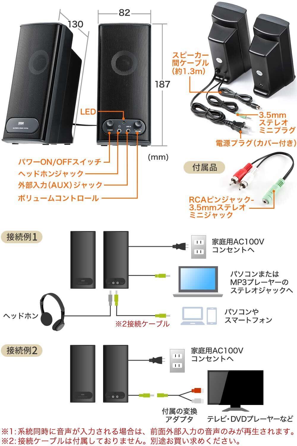 サンワダイレクト PCスピーカー 有線 3.5mm 10W テレビ対応 イヤホンジャック付き 400-SP027