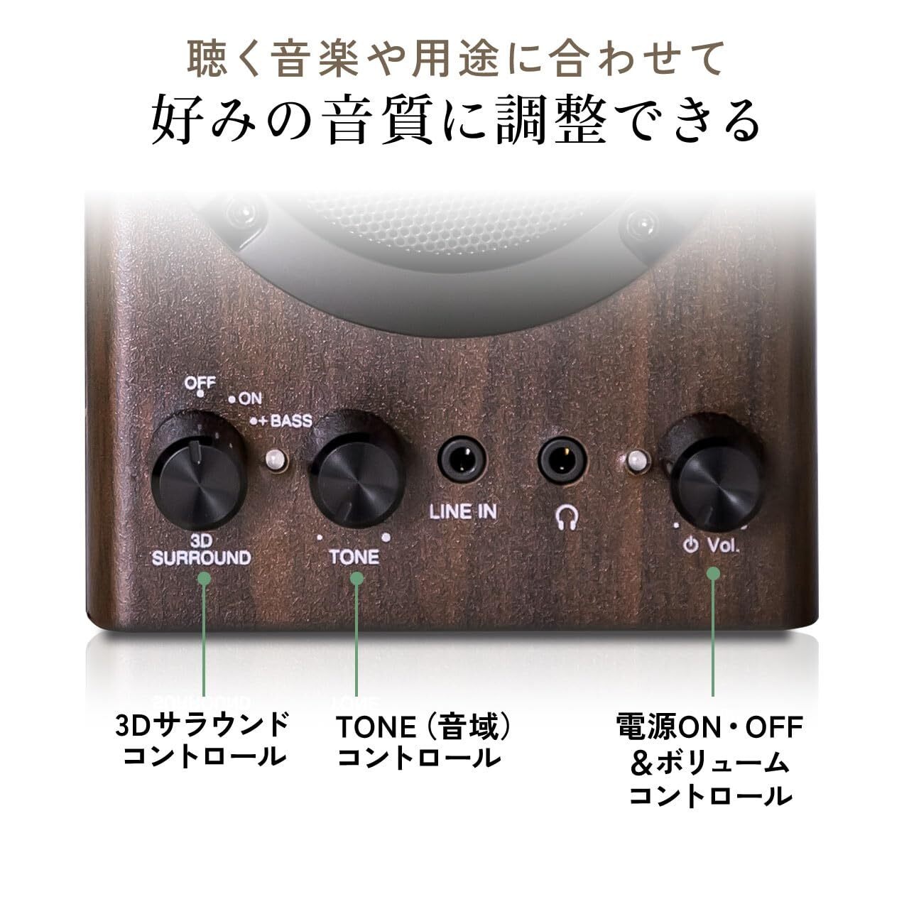 60W の最大出力を実現し、クリアでパワフルなサウンドを提供する木製 2ch スピーカー です。