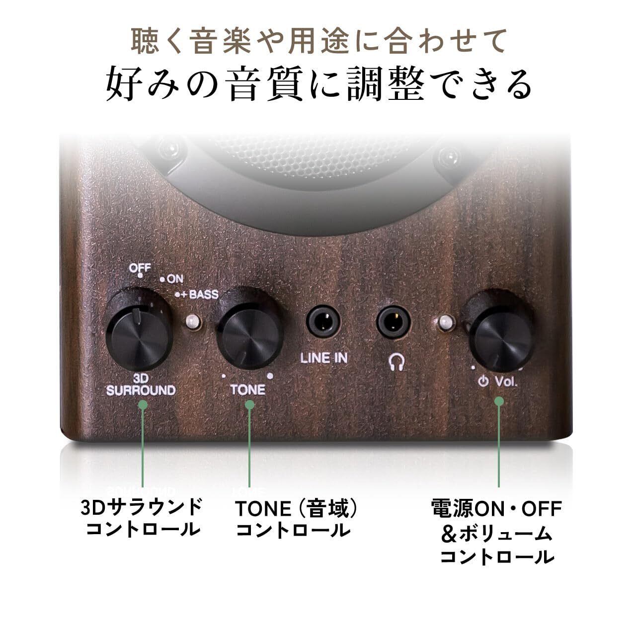 サンワダイレクト PCスピーカー 有線 3.5mm接続 木製 60W 高音調整可能 3Dサラウンド 木目調 AC電源 テレビ モニター パソコン用 400-SP114