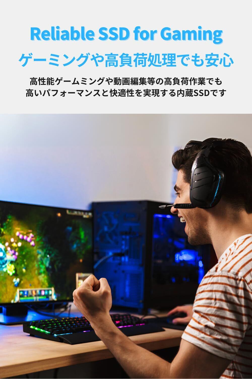 【ゲーミングPCの性能を最大限に引き出す】M.2 SSD GシリーズLEを増設することで、高速ローディング、ラグや処理落ちの軽減、強化された安定性により、ゲーミングPCの性能を最大限に引き出すことができます。