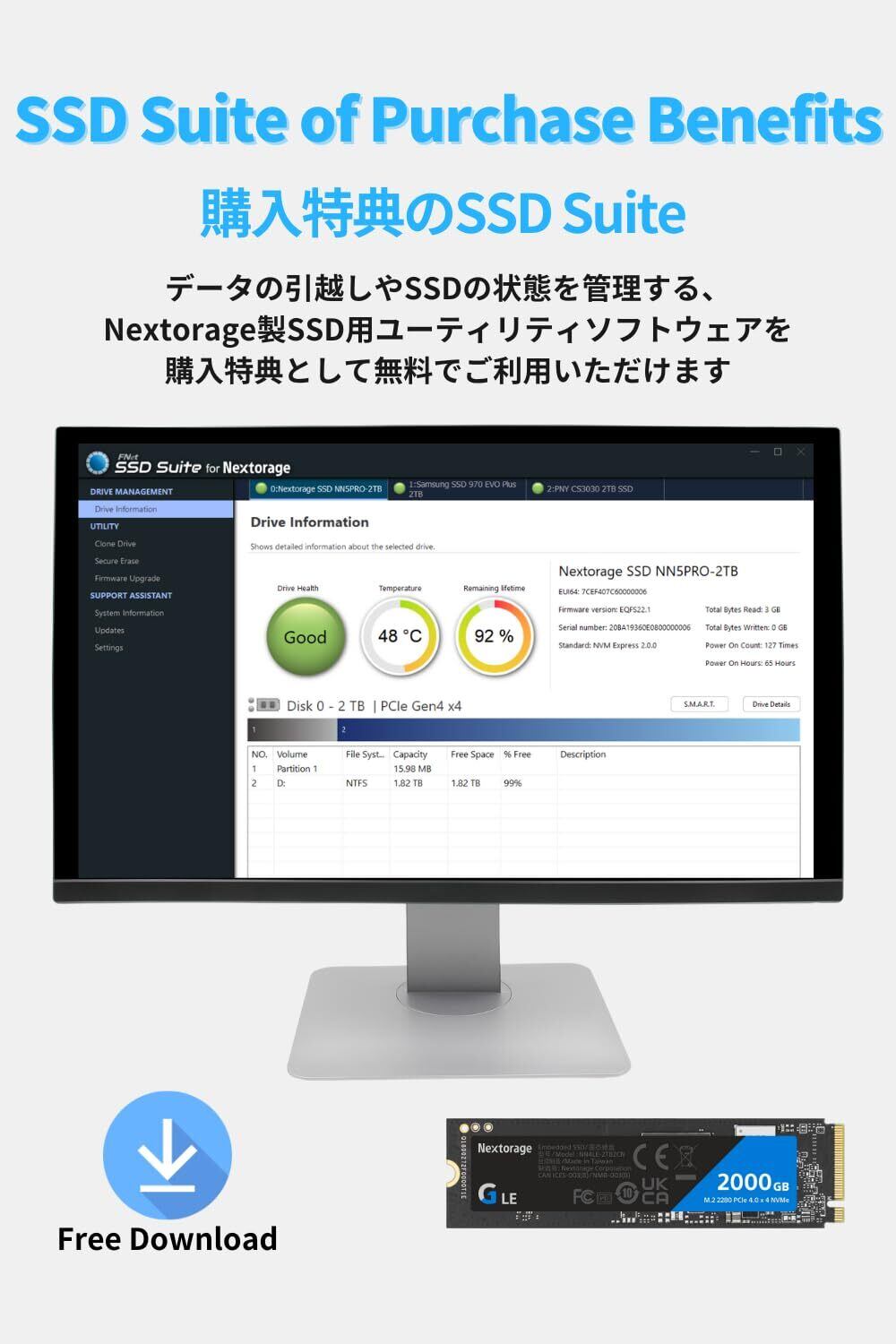 Nextorage 1TB SSD 内蔵 M.2 2280 PCIe Gen 4.0 x 4 NVMe 1.4 最大転送速度 7400MB/s 1000GB ネクストレージ 内蔵SSD PS5 ハイスピード 安定 日本メーカー NN4LE-1TB2CN/GNE