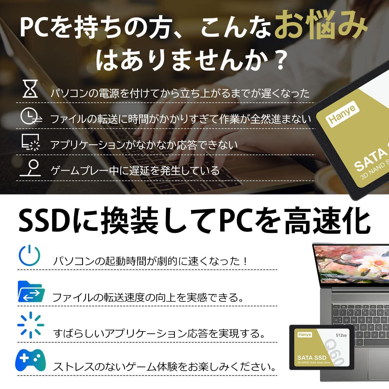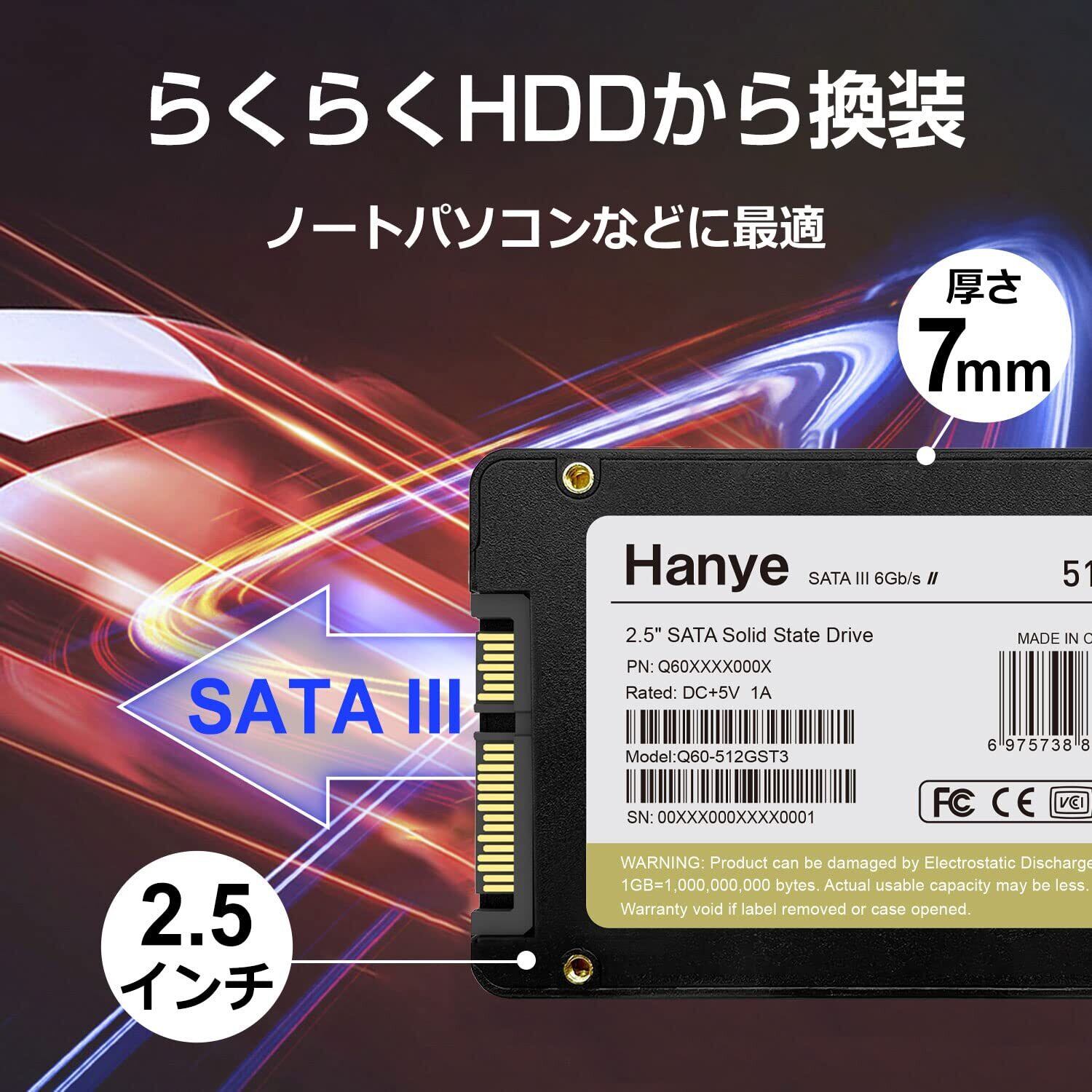 Hanye Q60 内蔵型SSD 2.5インチ 7mm、安心の国内サポート、 メーカー5年。
