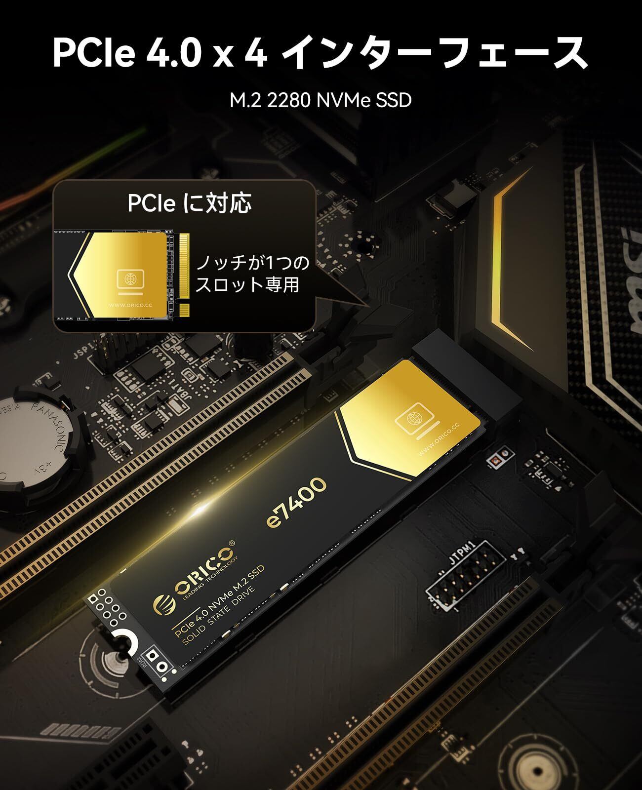 ORICO E7400 1TB 内蔵SSD - PCIe Gen4x4 M.2 NVMe 2280 読取速度 7400MB/s 書込速度 6600MB/s 高耐久 3D QLC NAND搭載 PS5動作確認済み グラフェン冷却シート採用 5年メーカー