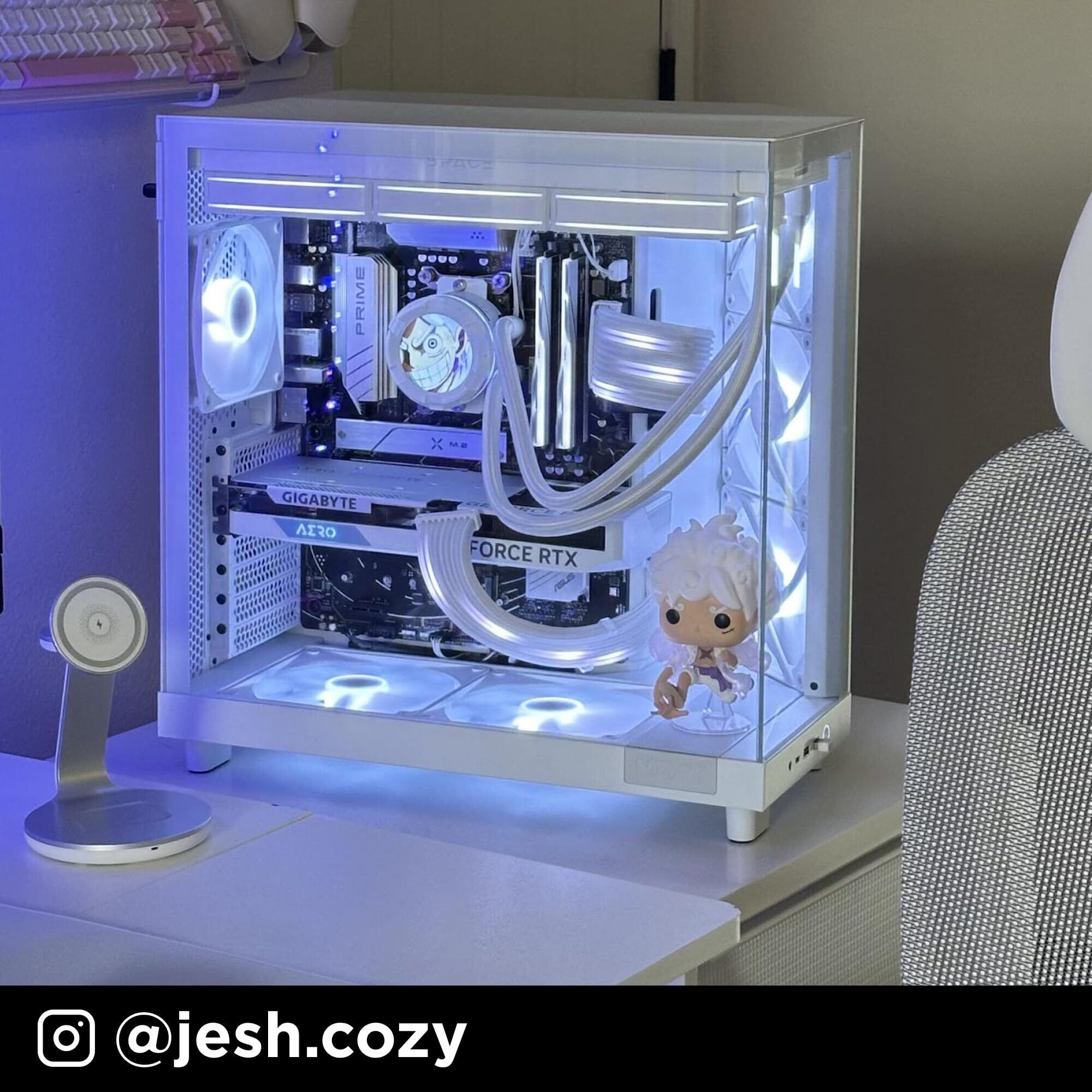 マザーボードやグラフィックスカードをとりつけるショーケース空間と、電源やストレージをとりつける裏側空間のデュアルチャンバー構造を採用、シンプルで洗練された外観にセットアップすることが可能です。
