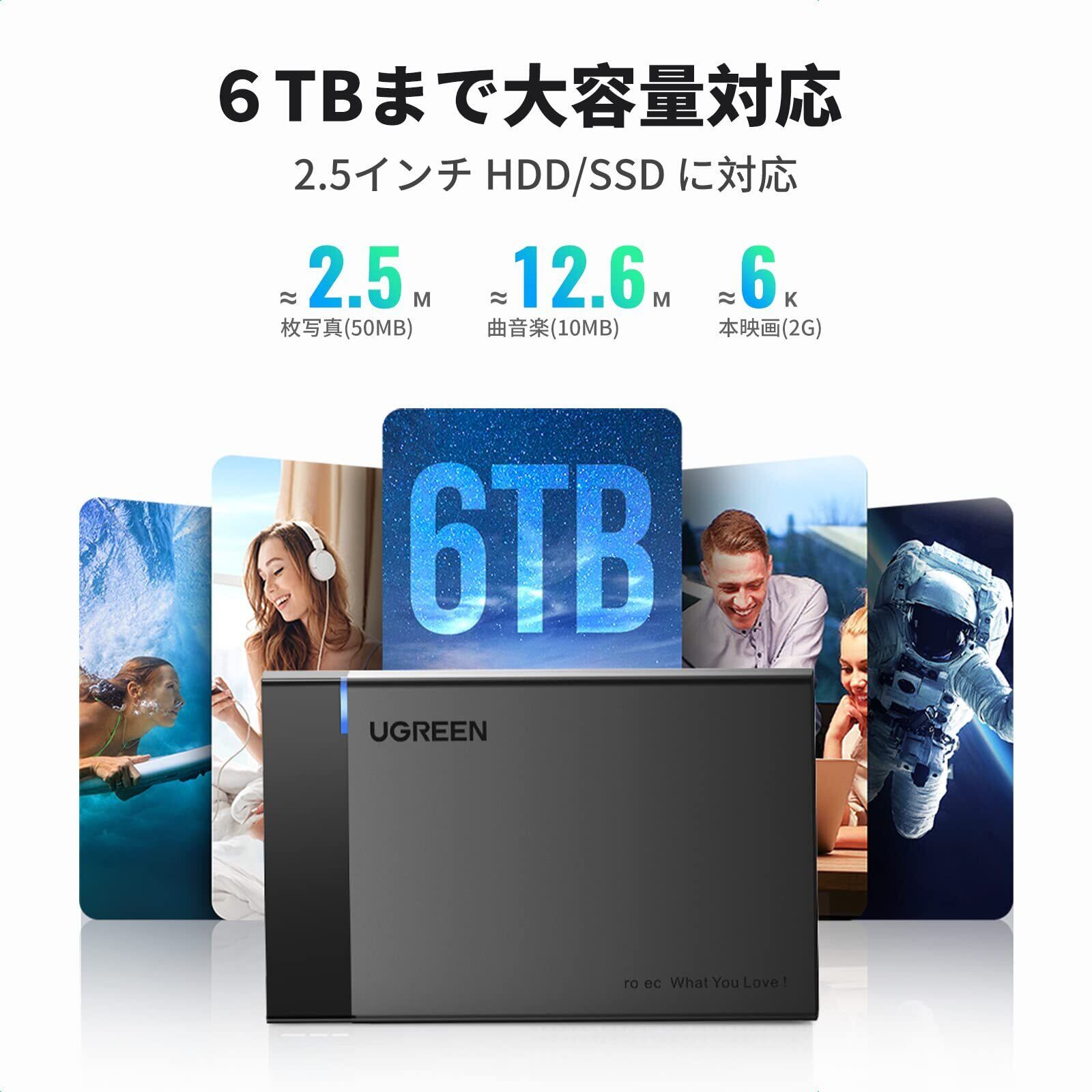 UGREEN 2.5インチ HDD ケース SSD ケース USB3.0接続 UASP対応 2.5型 SSD ケース 5Gbps高速転送速度 SATA 3.0 9.5mm/7mm対応 HDD ケース 6TB大容量対応 工具不要 ハードディスクケース ブラック 【USB A-MicroUSBケーブル付き】