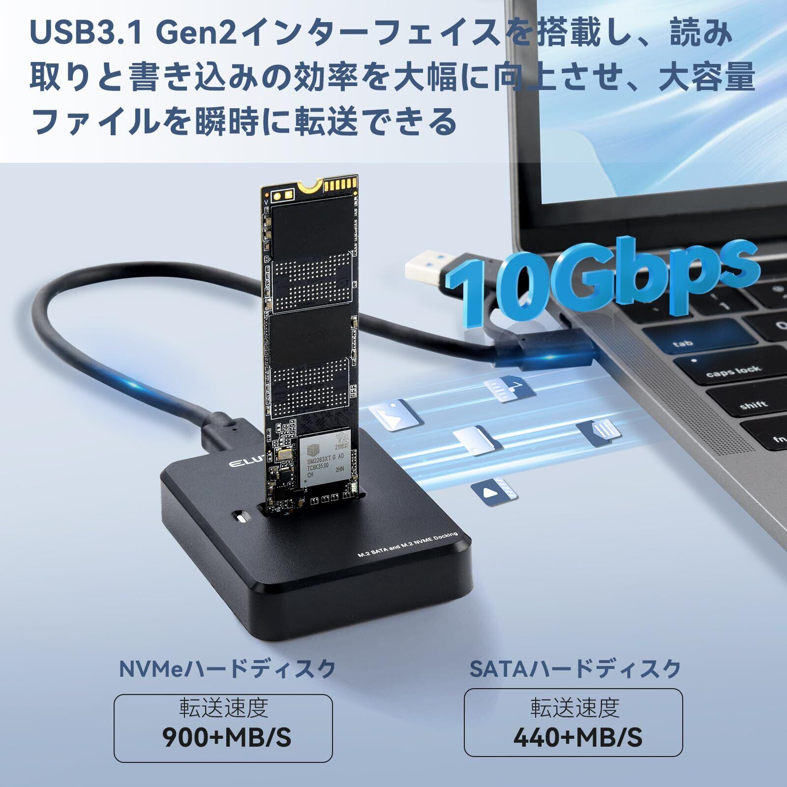 ELUTENG M.2 SSD 外付けケース NVMEとSATA両対応 SSDドッキングステーション Type-C Mキー/B+Mキー USB 3.1 Gen2 10Gbps UASP対応 2230/2242/2260/2280 SSD対応