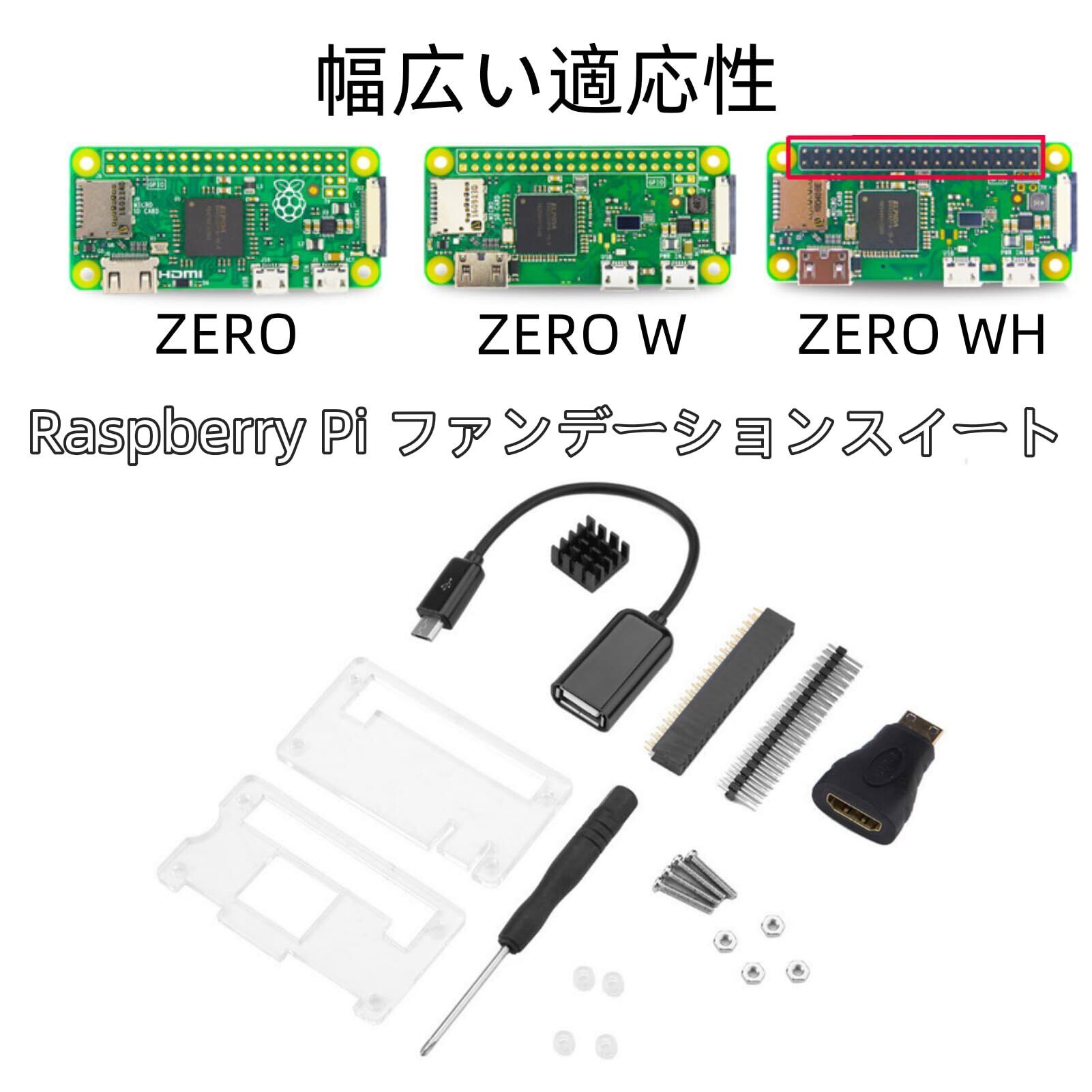 ファンデーションキット Zero WH スターターセット アクリルケース ヒートシンク miniHDMIアダプター GPIO 40ピン コネクタ ネジドライバー