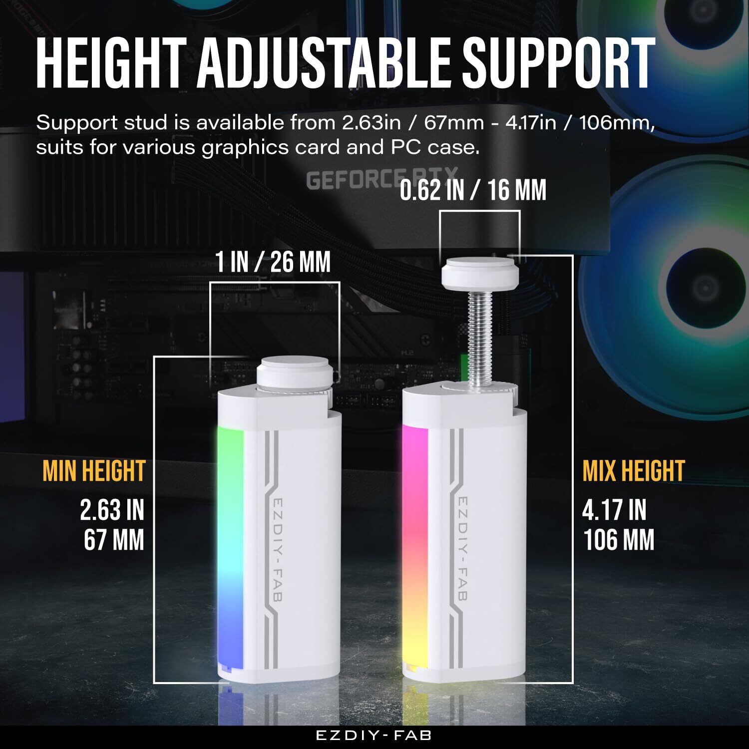 EZDIY-FAB GPUサポート 汎用ビデオカードホルダー グラボ ステー ホワイト ARGB 5V 3PIN対応 AURA Sync対応 グラボ 支え グラボ 支え棒 GPUブレースサポート 高さ調整可能 GPUたるみ防止 GPU支える vgaサポート gpu ステー 白 GPUホルダー VGAサポートステイ 白 - 1パック