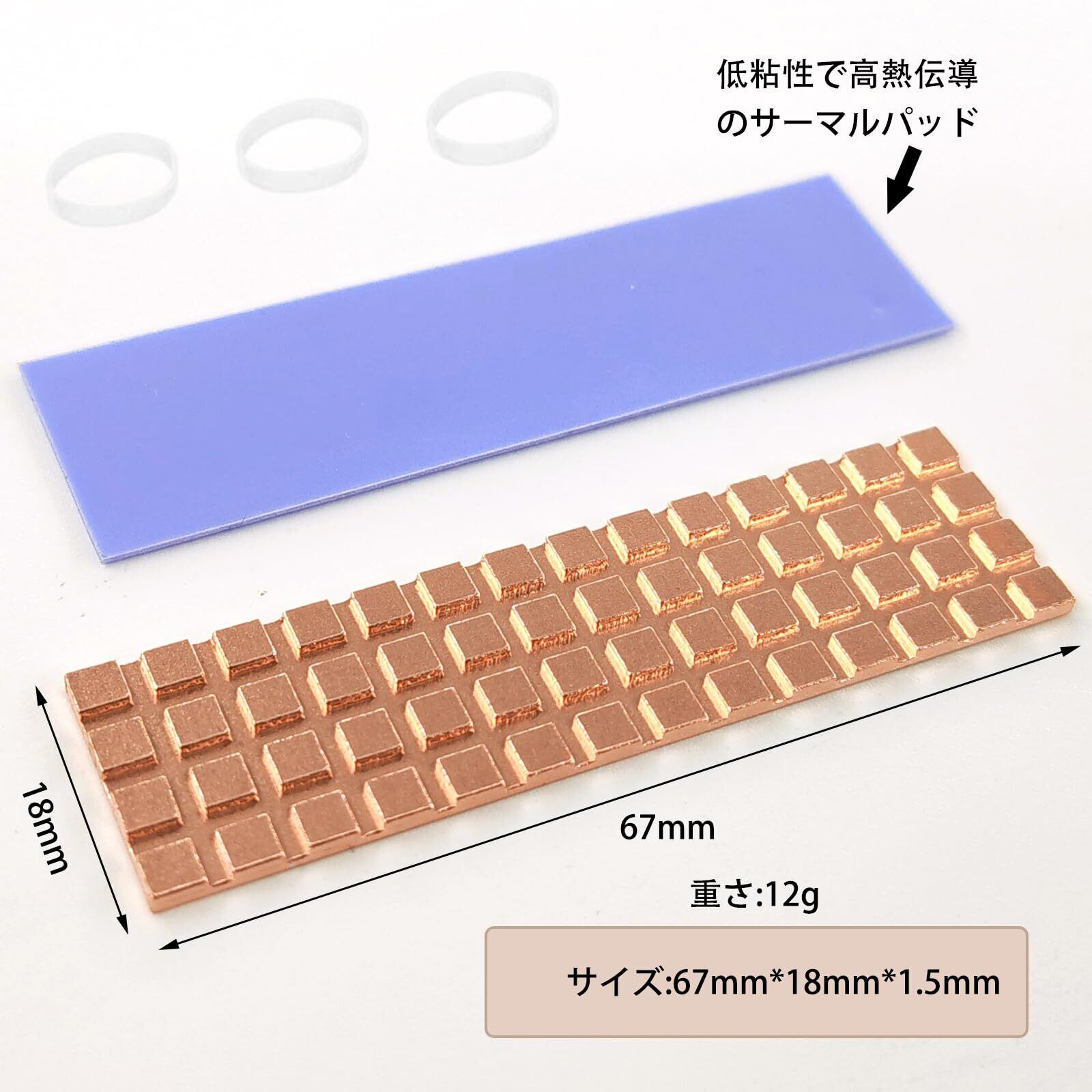 1. 高互換性設計:当NVMe M.2 SSD ヒートシンク はM.2 2280 SSDと互換性があります。また、M.2 SSD以外にPS5やニンテンドースイッチ、スマホなど他の発熱端末にも対応可能な純銅ヒートシンクです。サイズ:67*18*1.5(厚み)mm。