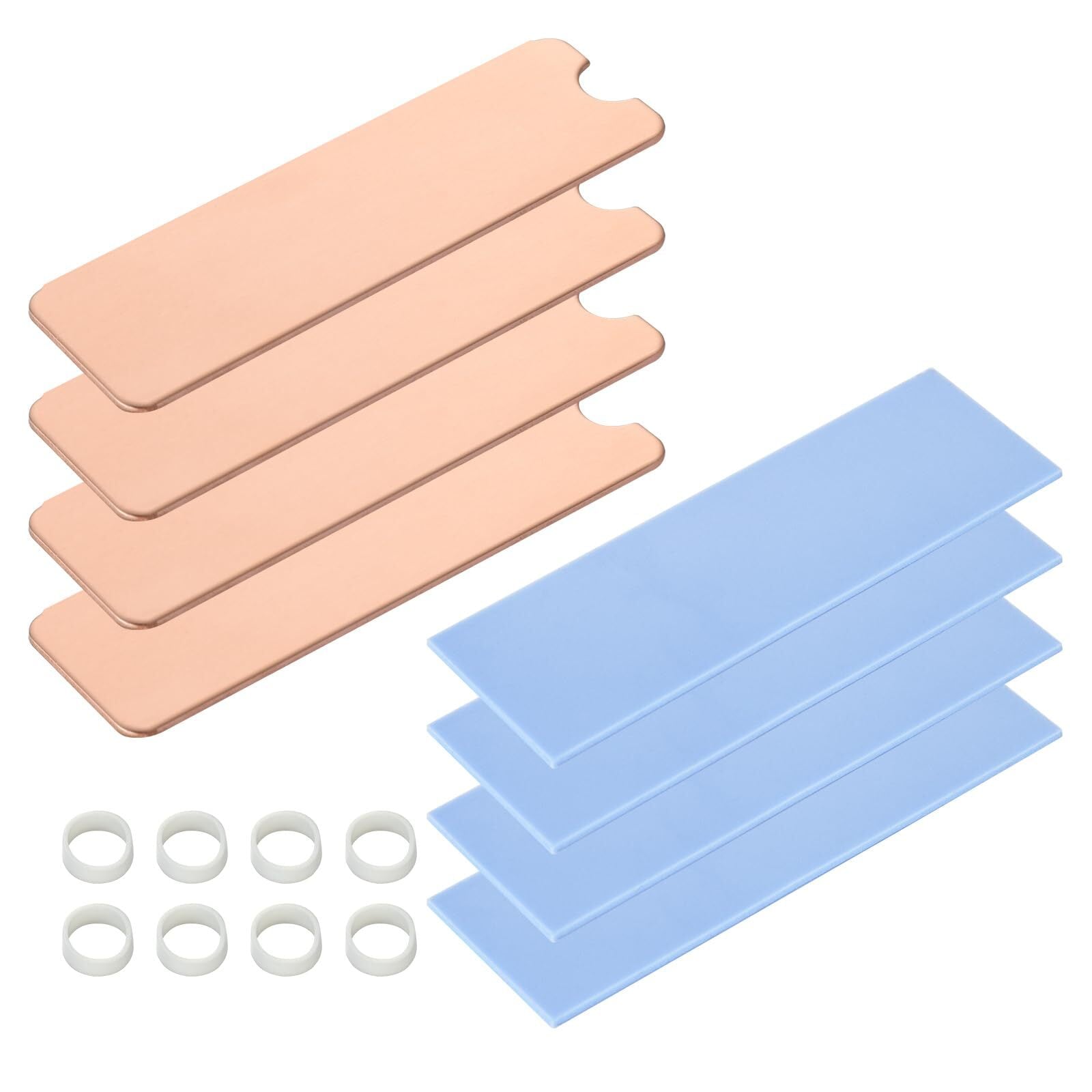 ELUTENG M.2 SSD ヒートシンク 銅 薄型 ヒートシンク 導熱接着シート付き 4個セット 2280 M.2 SSD用 熱暴走対策 冷却ラジエーターフィン NVME SSDクーラー 熱伝導性両面テープ シリコンゴムリング付き 黒 73mm×21mm×1mm