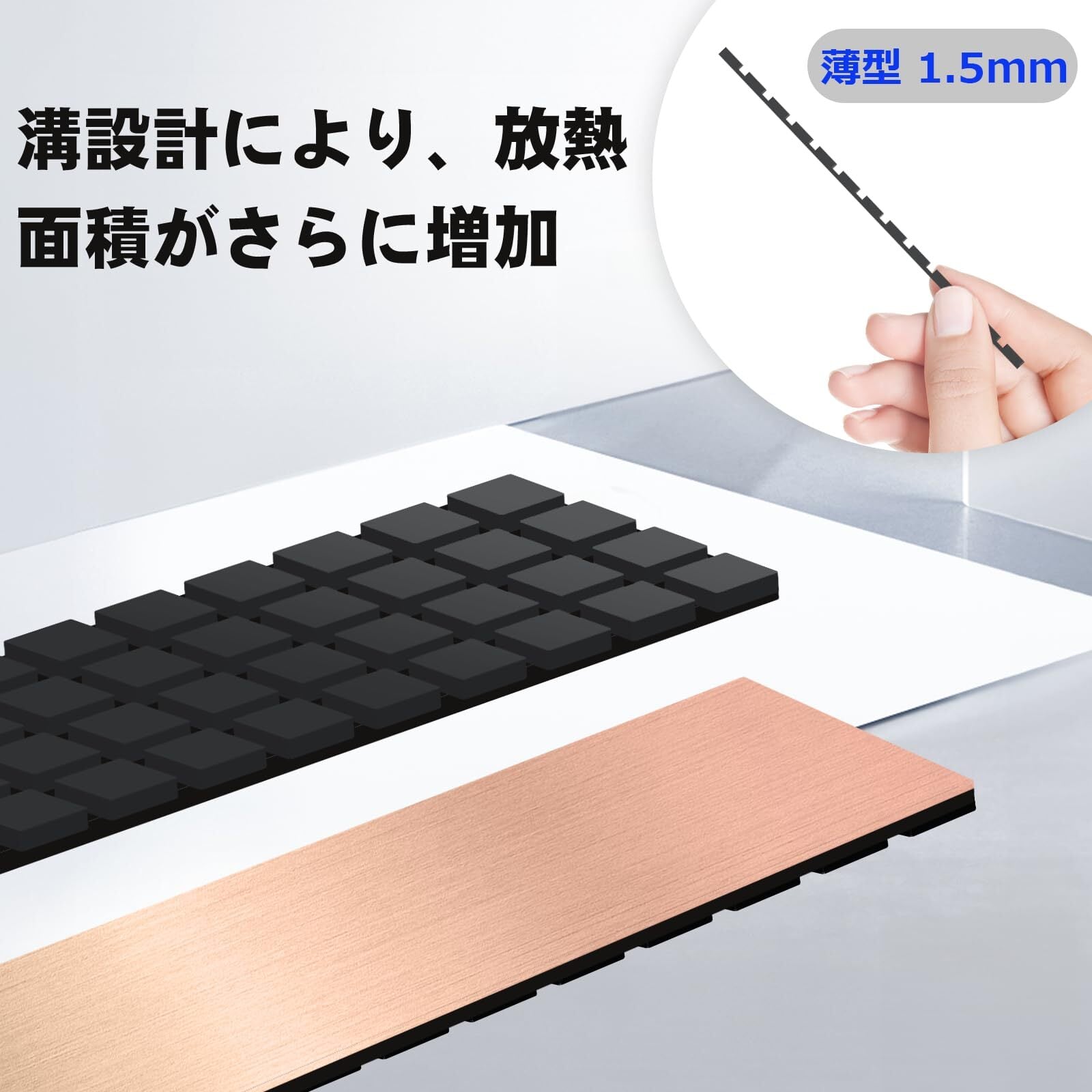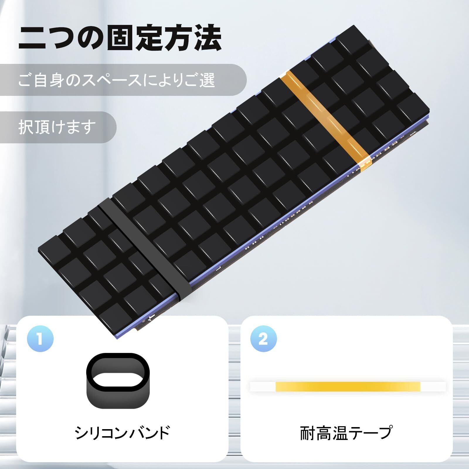 1.5mm 薄型設計:わずか1.5mmの厚みため、パソコンはもちろん、余りスペースのないノートパソコン、MiNiパソコン、ゲーム機のM.2 SSD にも干渉なく取り付けできます。また、厚みは0.06mmしかない固定用 耐高温テープ(カプトンテープ)を同梱します、耐高温、長く使用しても劣化しません。
