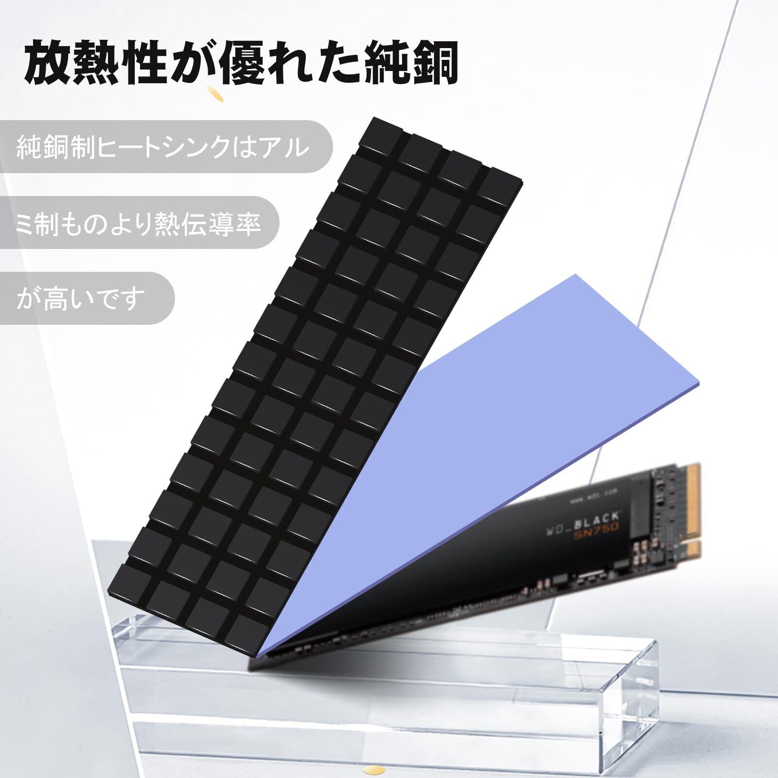 M.2 2280 SSD 用 ヒートシンク:当ヒートシンクは2280 m .2 SSD 用に設計されたものです。高性能M2 SSDはしばらく作業してから、かなり発熱しますが、当銅製ヒートシンクをお手軽に追加して、熱の発散が加速し、SSDの高性能を維持してくれます。