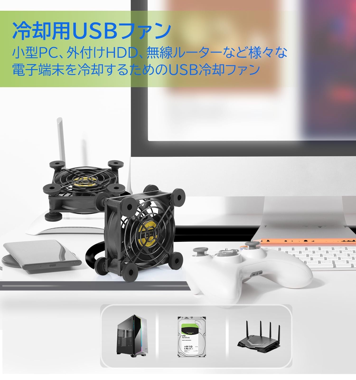Mauknci USB 静音 冷却ファン 振動防止ゴム搭載 5V USBファン 強力 2600RPM 小型 車中泊 換気扇 冷却クーラー パソコン ルーター 水槽 PS4など冷却 FAN 8CM 2個1組