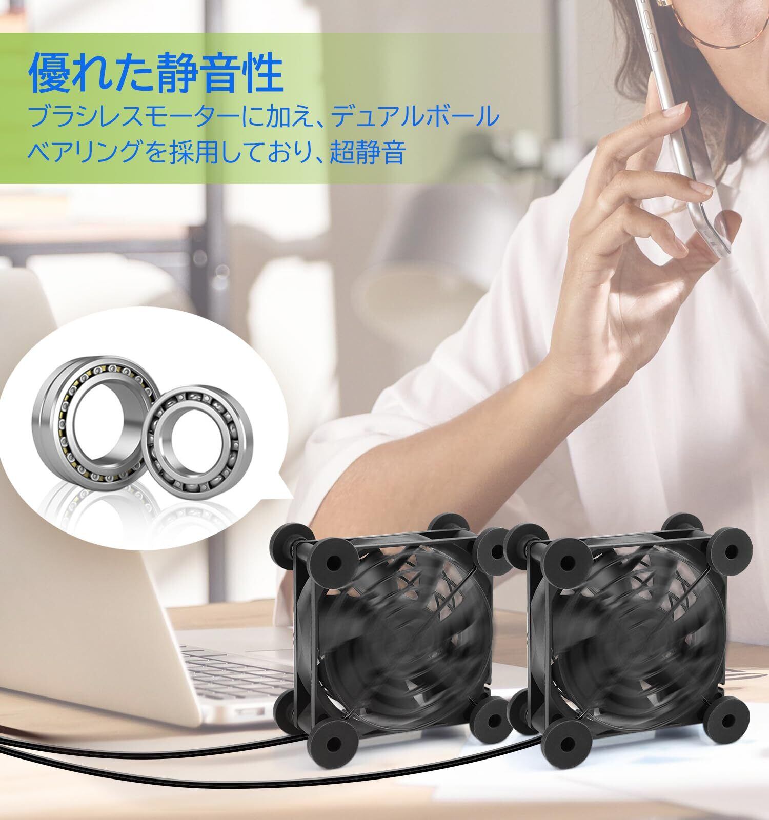 USB ファンは高品質のダブルボールベアリング設計を採用しており、優れた耐久性があり、定格寿命約は 60,000 時間を超えて、長時間中断なく動作できます。