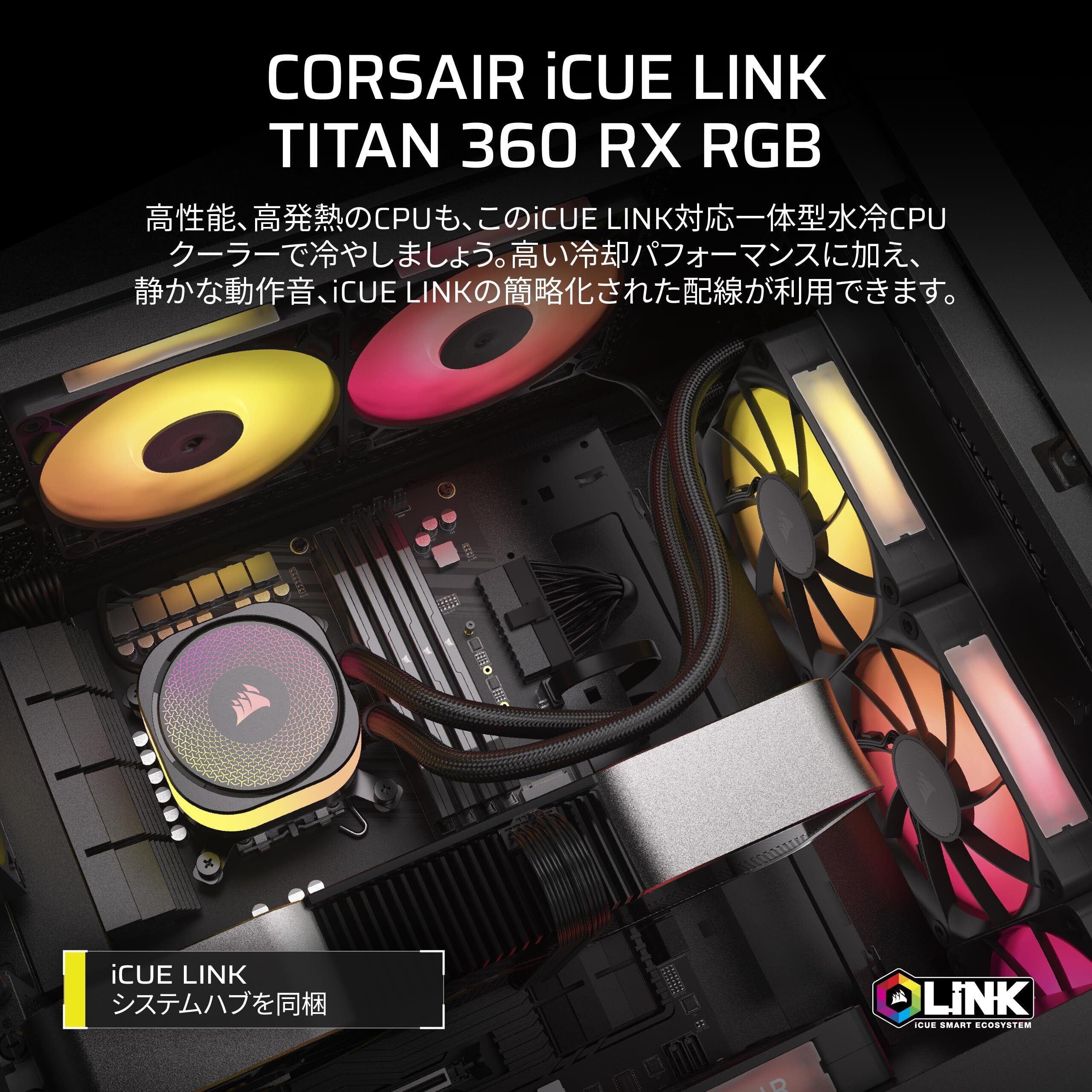 CORSAIR iCUE LINK TITAN 360 RX RGB 水冷式 CPU クーラー – RX120 RGB ファン搭載 – Intel® LGA 1851/1700, AMD® AM5/AM4 対応 – iCUE LINK システムハブ同梱 ブラック CW-9061018-WW