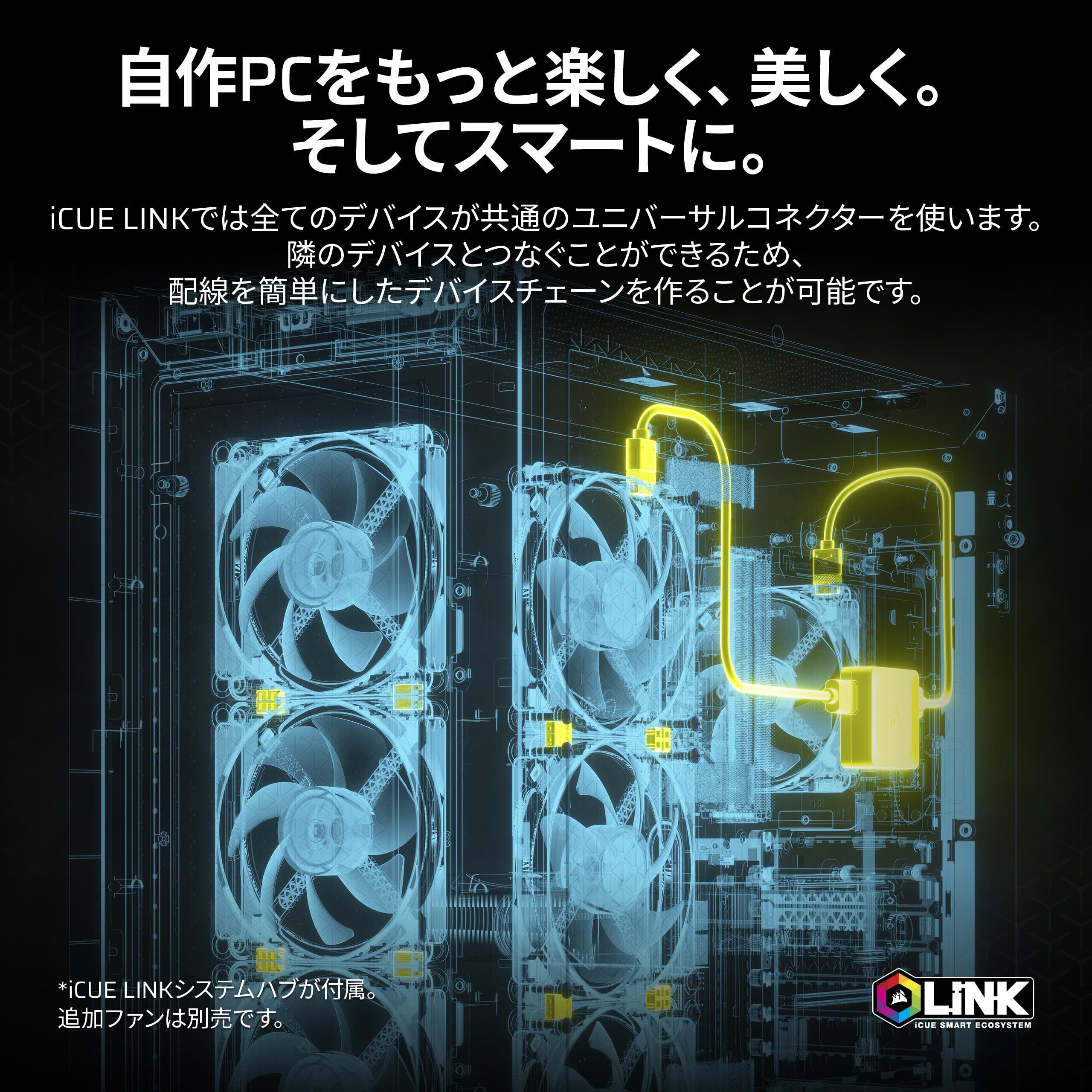 iCUE LINKでオールインワンCPUクーリングを簡単に: iCUE LINKを活用した高性能、低ノイズのAIOクーラーは、接続を簡素化、合理化されたシステムになりCPUを最大限に活用することができます。