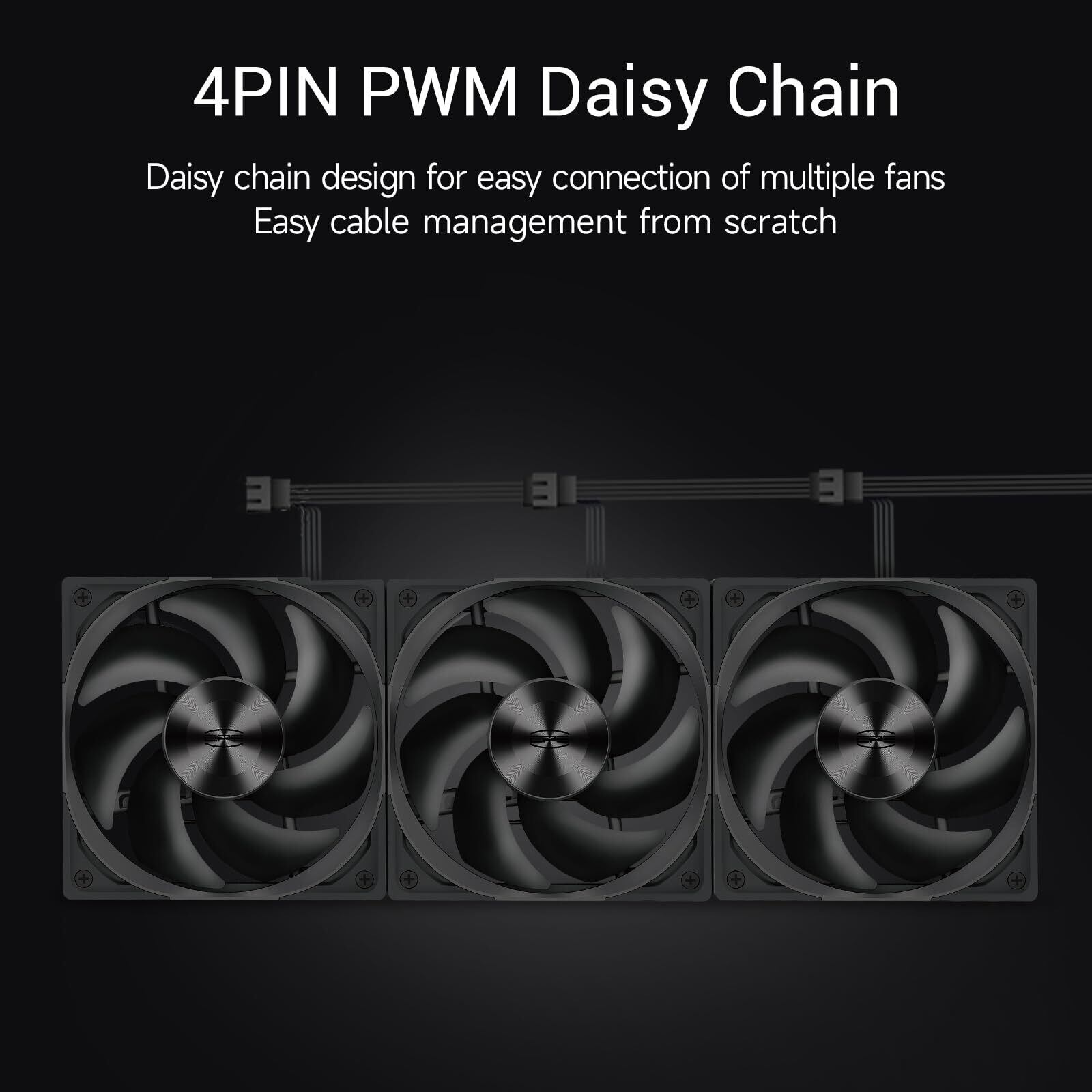 【簡単なケーブル管理】コンピュータファンはデイジーチェーンコネクタを介して各デバイスを次のデバイスに接続することで、混乱を減らし、ケーブル管理を簡略化することができます。