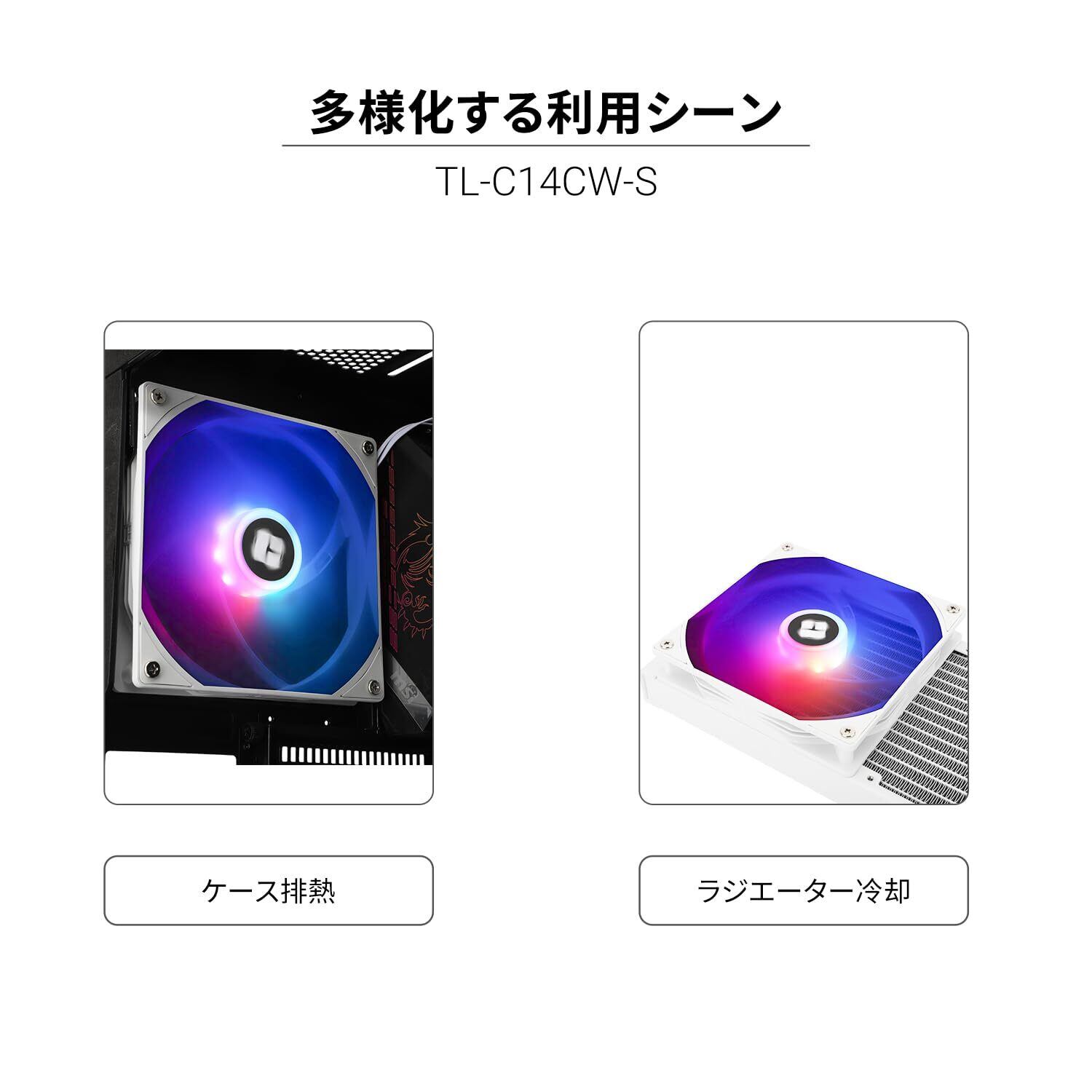 Thermalright TL-C14CW-S ケースファン高性能クーラーファン 1500RPM、 S-FDB ベアリング付き 4 ピン PWM 冷却ファン(140mm,ARGB)