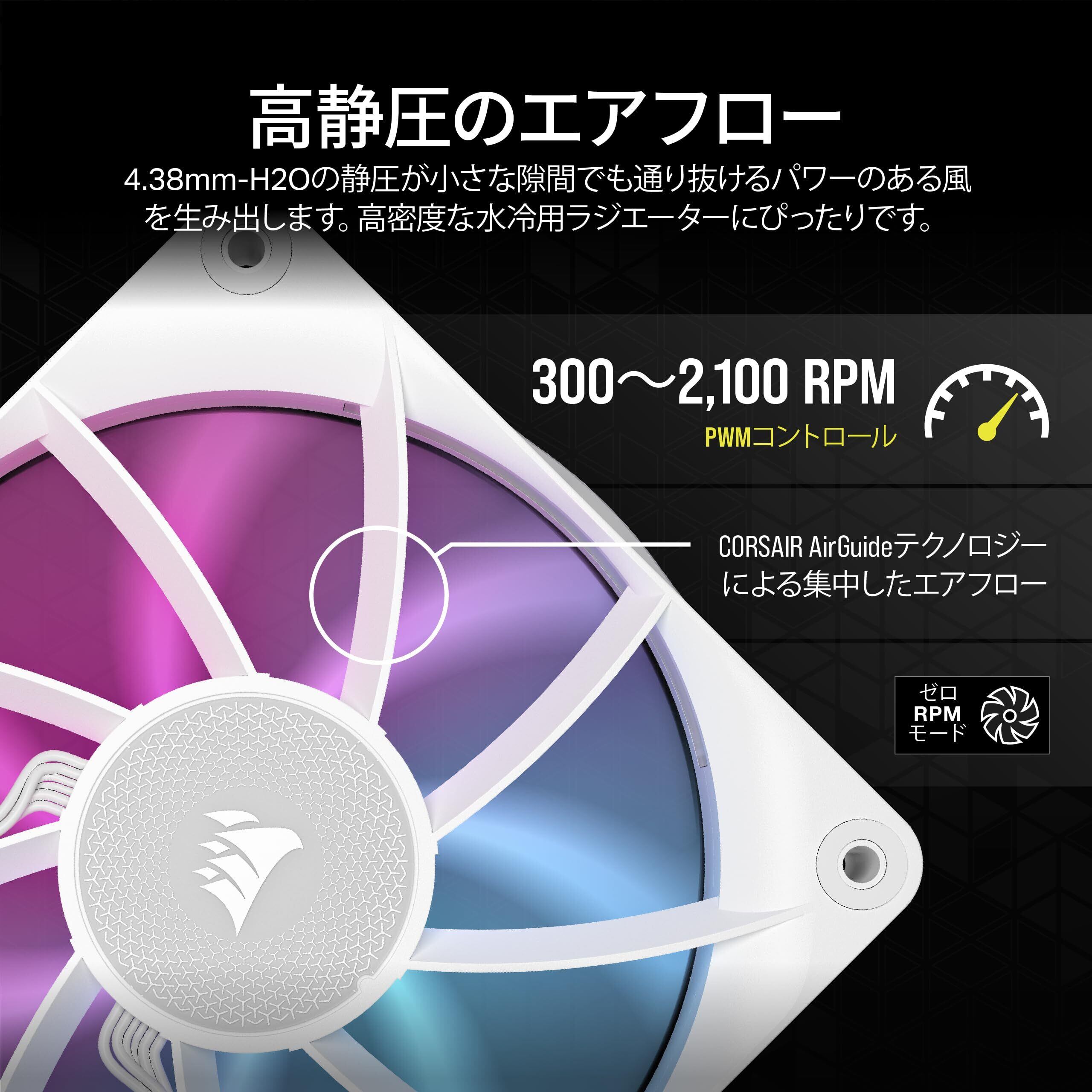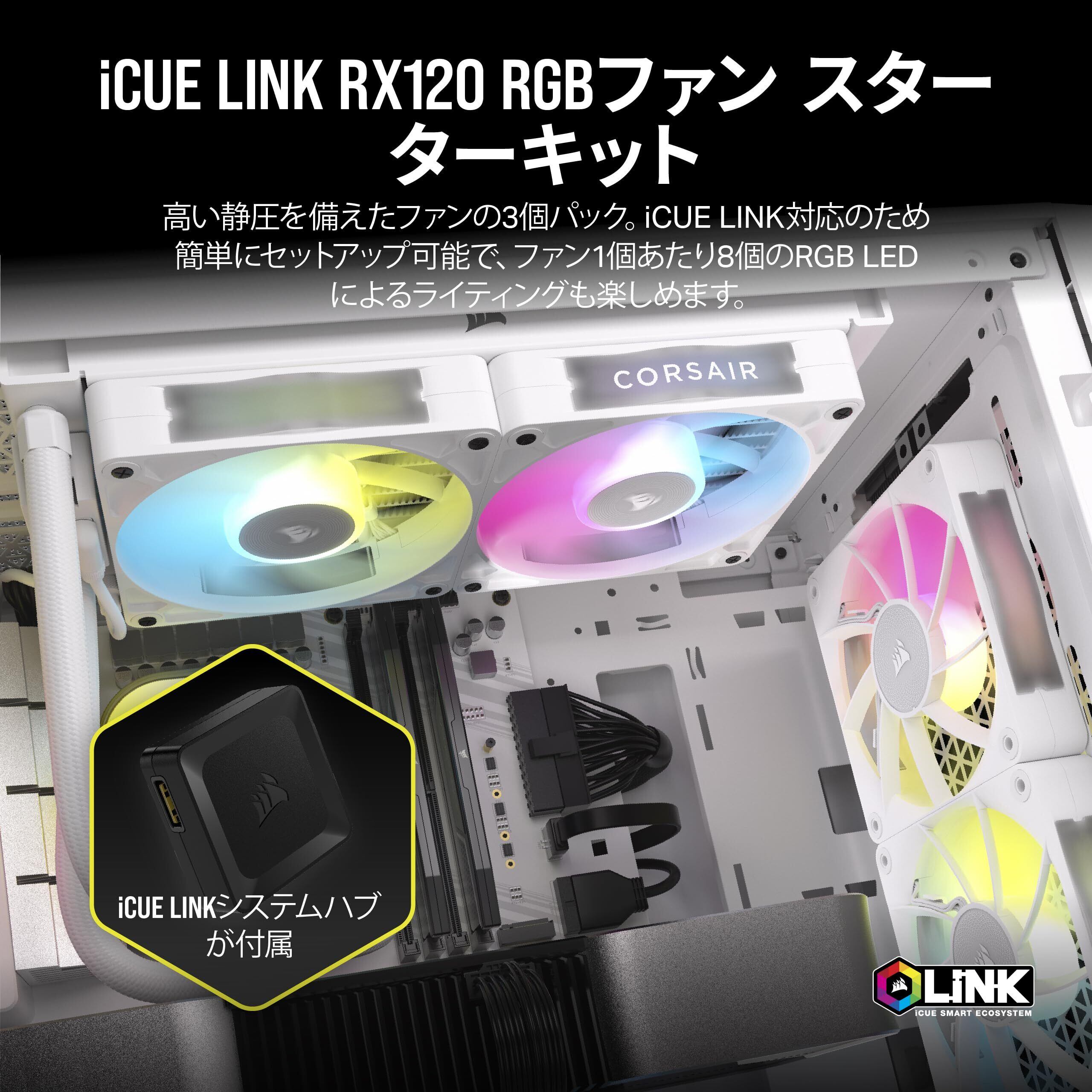 CORSAIR iCUE LINK RX120 RGB スターターキット 120mm PWM PCケースファン トリプルパック(iCUE LINKシステムハブ付属) ホワイト CO-9051022-WW