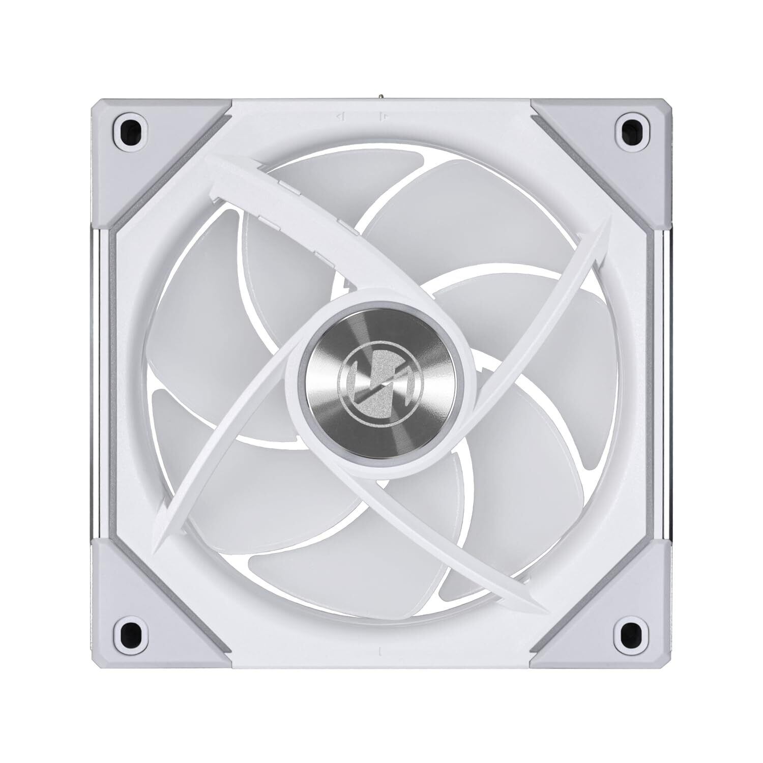 Lian Liのアルミニウムロゴをファンの軸裏に配置。ロゴ周りが光りつ、リムもLEDが光ります。