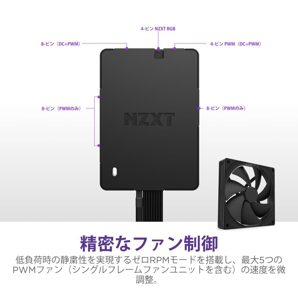 NZXT CAMソフトウェアを使用してファン速度やRGB照明の制御およびカスタマイズが可能なRGB&ファンコントローラーです。最大5つのPWMファンと最大96個のLEDを制御し、静音性を追求したゼロRPMモードを搭載しています。