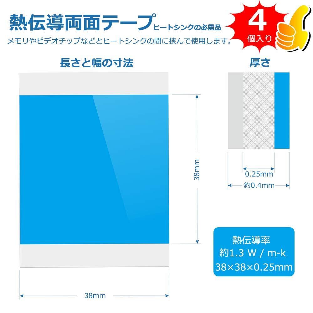 熱暴走対策、4pcs両面粘着導熱接着シート付き。導熱接着シートの熱伝導率: 1.32 W / m-k。