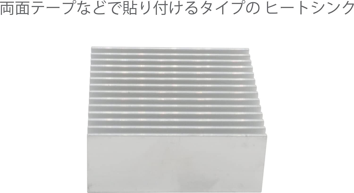 正方形(5cm平方・2mm厚)の小型アルミヒートシンクです。熱伝導タイプ両面テープ(別売)で貼り付けてご利用いただけます