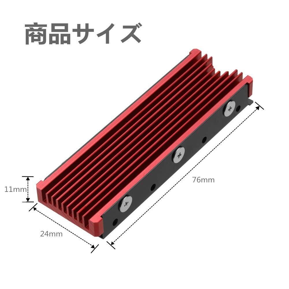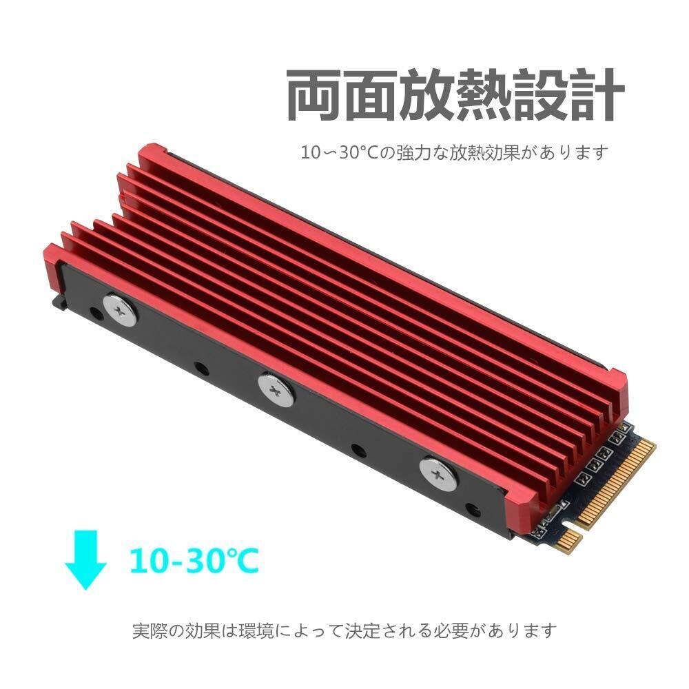M.2 2280mm SSD両面ヒートシンク、PC / PS5用サーマルシリコンパッド付きM.2PCIE NVMe SSD (赤) …