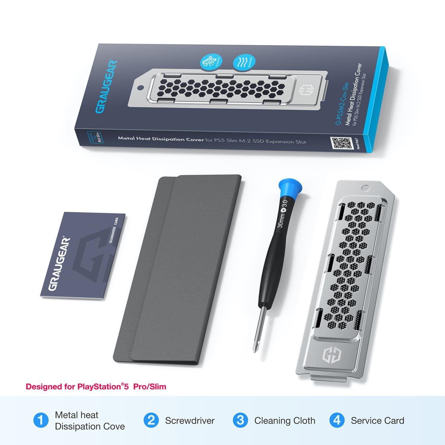 【付属品】GRAUGEAR PS5専用のSSDカバー、ドライバー、クリーニングクロス、書