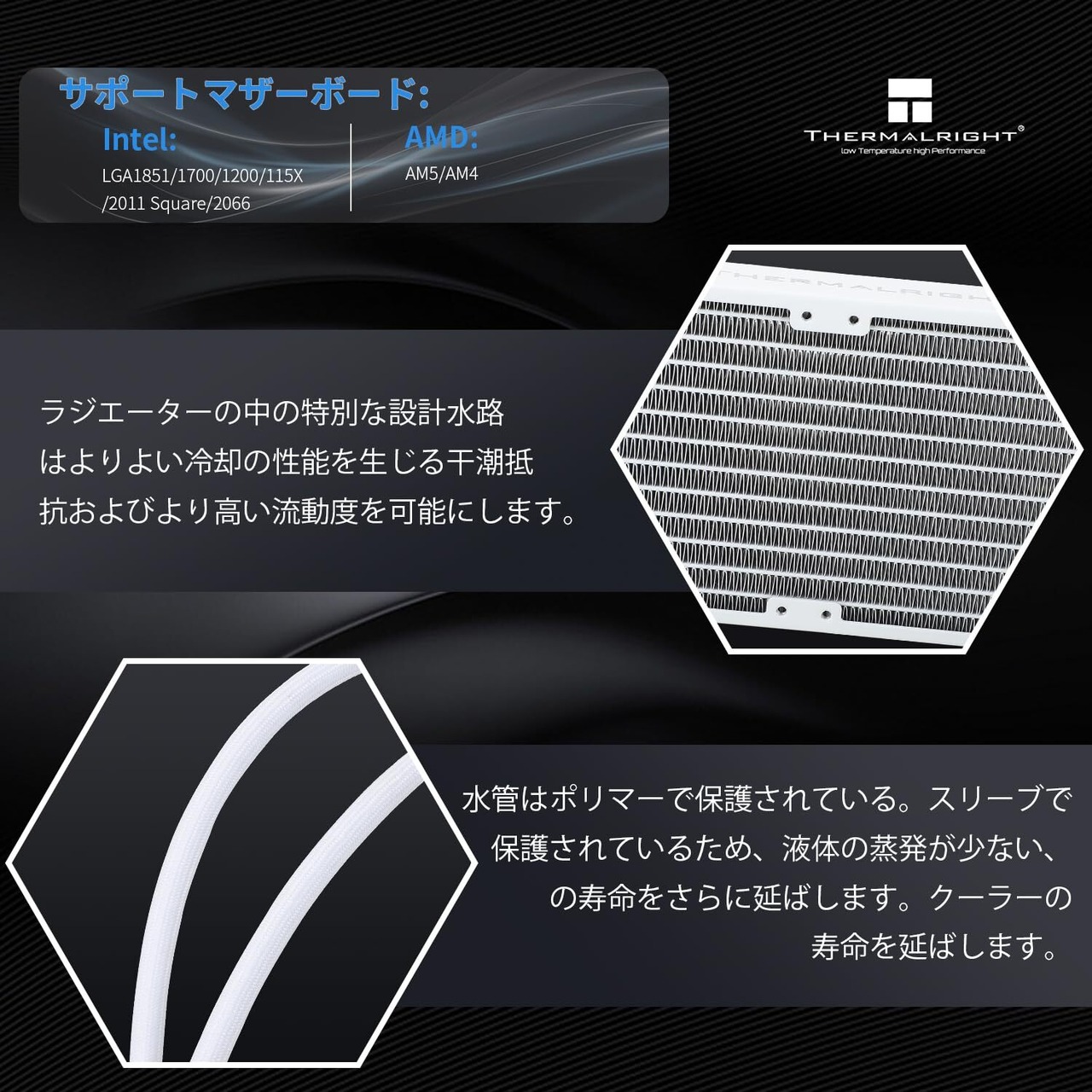 Thermalright Frozen Infinity 360 White CPU 水冷ラジエーター、360mm ラジエーターインフィニティミラー、簡単な取り付け、低ノイズ ウォーター ポンプ、3 つの高性能 PWM ファン、2000RPM 速度、AMD AM4/AM5、Intel LGA115X/1200/1700/1851 をサポート