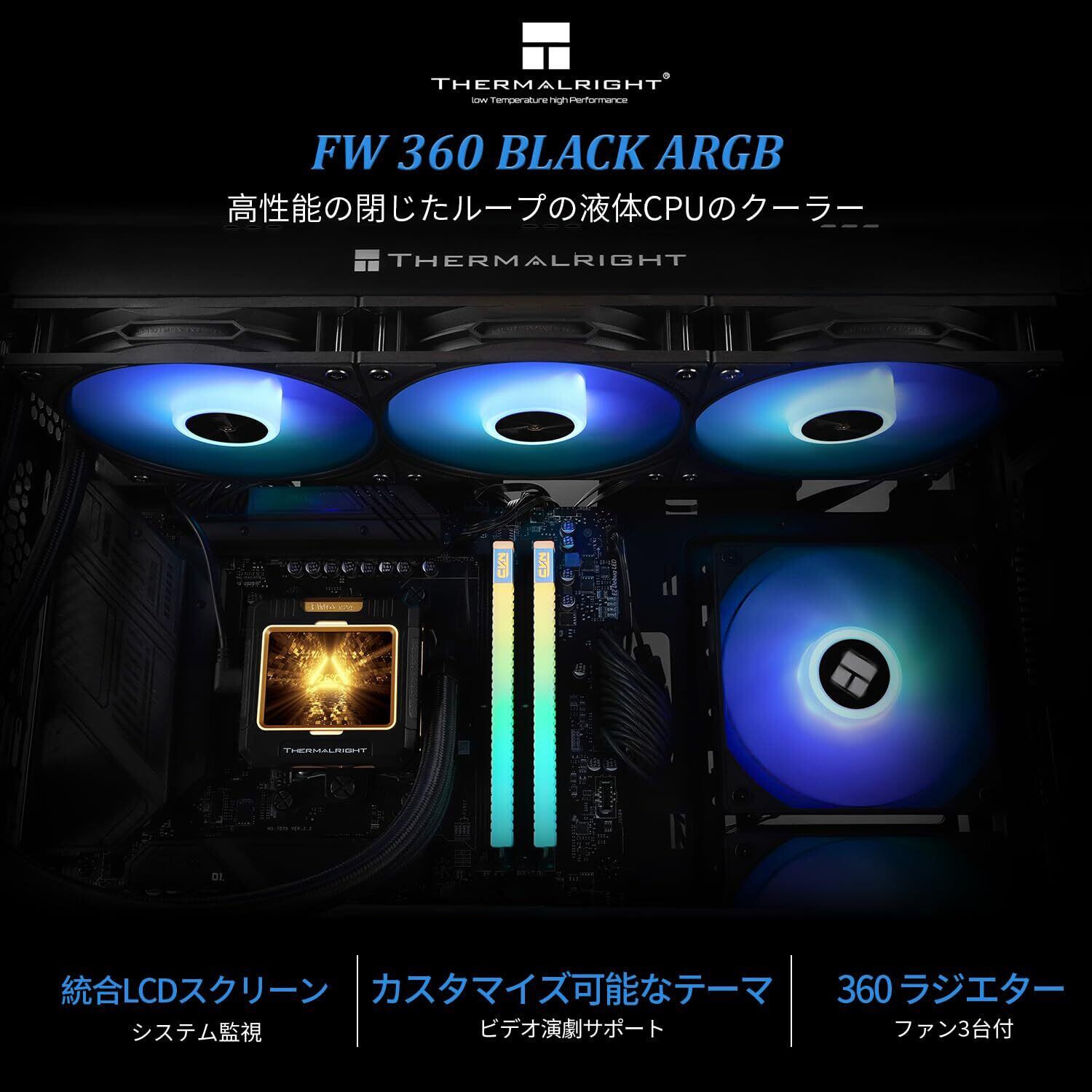 Thermalright FW 360ブラックARGB CPUウォータークーラー、2000RPMの3つのPWMファン、320 * 240解像度のIPS LCDスクリーン、液体CPUクーラー、AMD用CPU PCアイオクーラー:AM4 / AM5 / Intel LGA1700