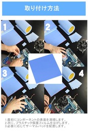 製品仕様:ソフトシリコンサーマルパッド5枚入、1枚サイズ:100mm x 100mm x 0.5 mm(L x W x T)、熱伝導率: 1.5 w/m-K、 耐熱温度: 50~200(℃)、カラー: ブルー。