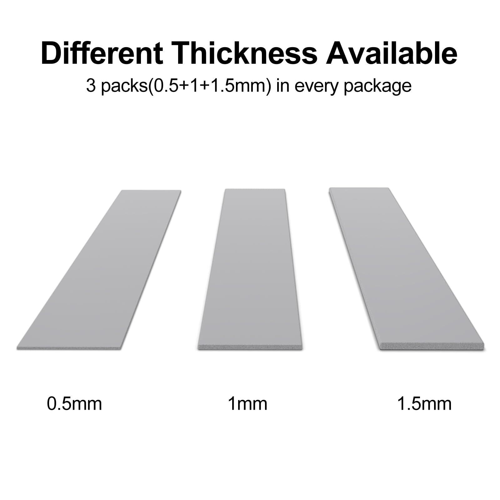 Aairhut 13 W/m.Kサーマルパッド4枚、70 x 20 mm 0.5 mm+1 mm+1.5 mm熱伝導マット冷却マット非導電耐熱限界オデッセイカバー、二重自己粘膜付き、PCノートパソコンPS4 SSD M.2に適している