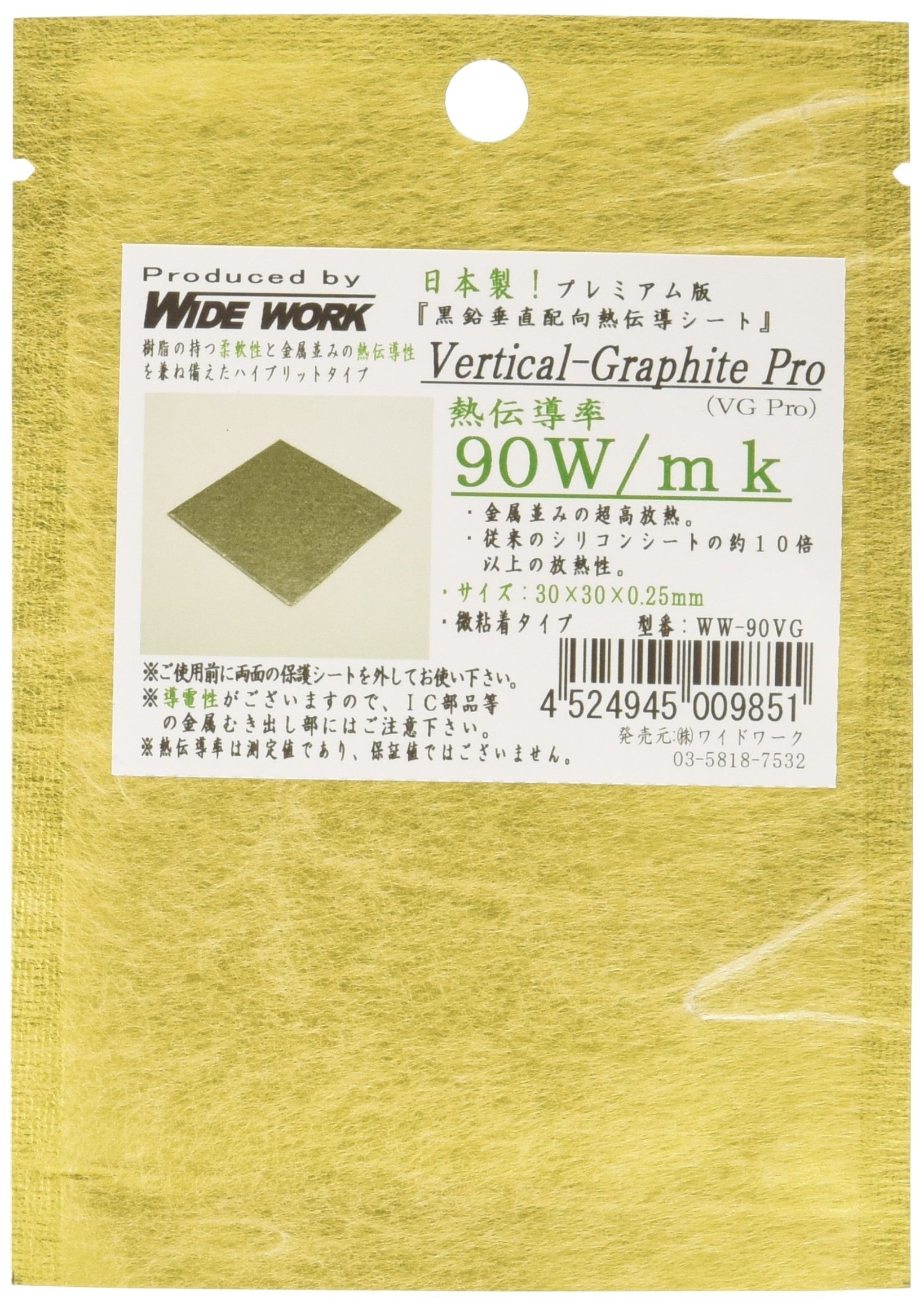 ワイドワーク 黒鉛垂直配向熱伝導シートVertical-GraphitePro 熱伝導率90W/m・K高性能熱伝導シート30×30×0.25mm WW-90VG